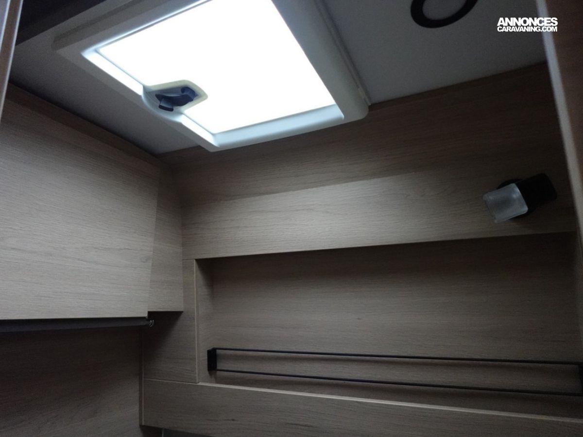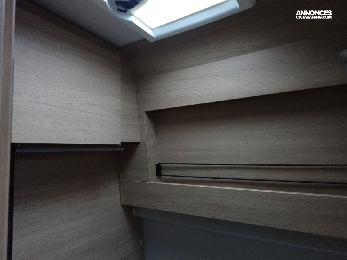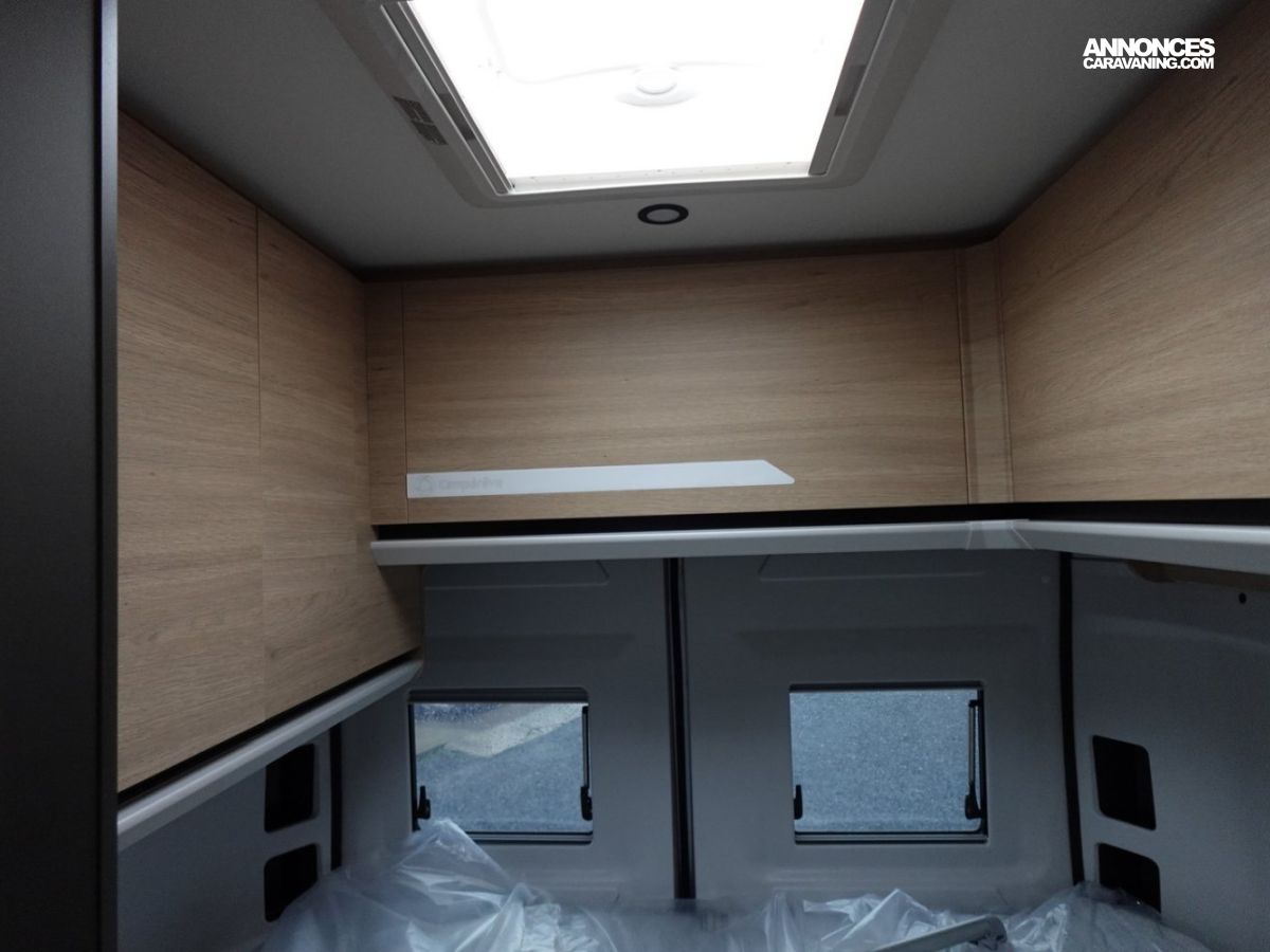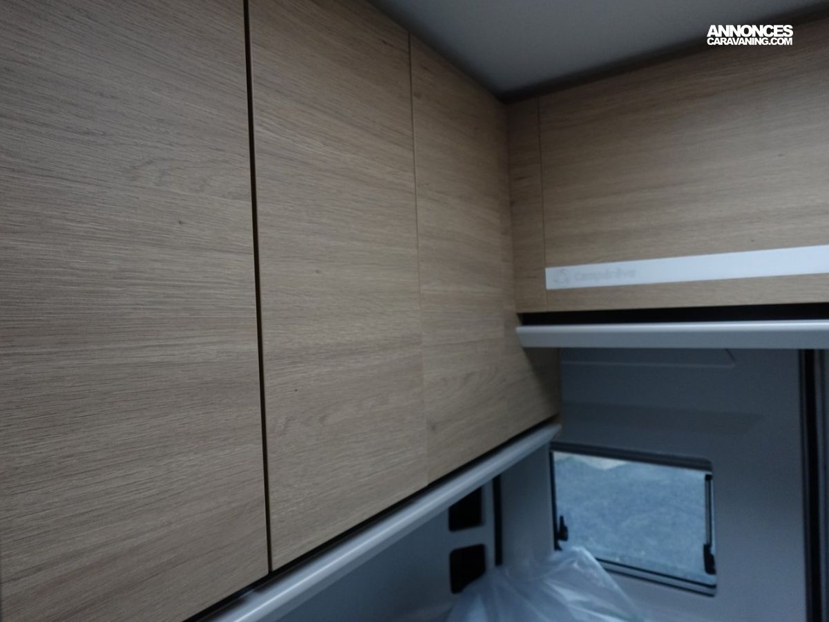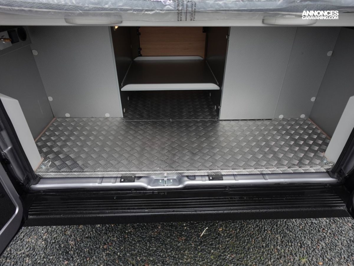 Son salon en L panoramique crée une atmosphère conviviale, tandis que la douche indépendante des WC garantit un véritable confort au quotidien. Exclusivité Campérêve : le MODUL’SPACE® avec son système de penderie breveté par le groupe RAPIDO, libère de l’espace en un clin d’œil. À l’arrière, la grande soute offre un volume modulable selon vos besoins.