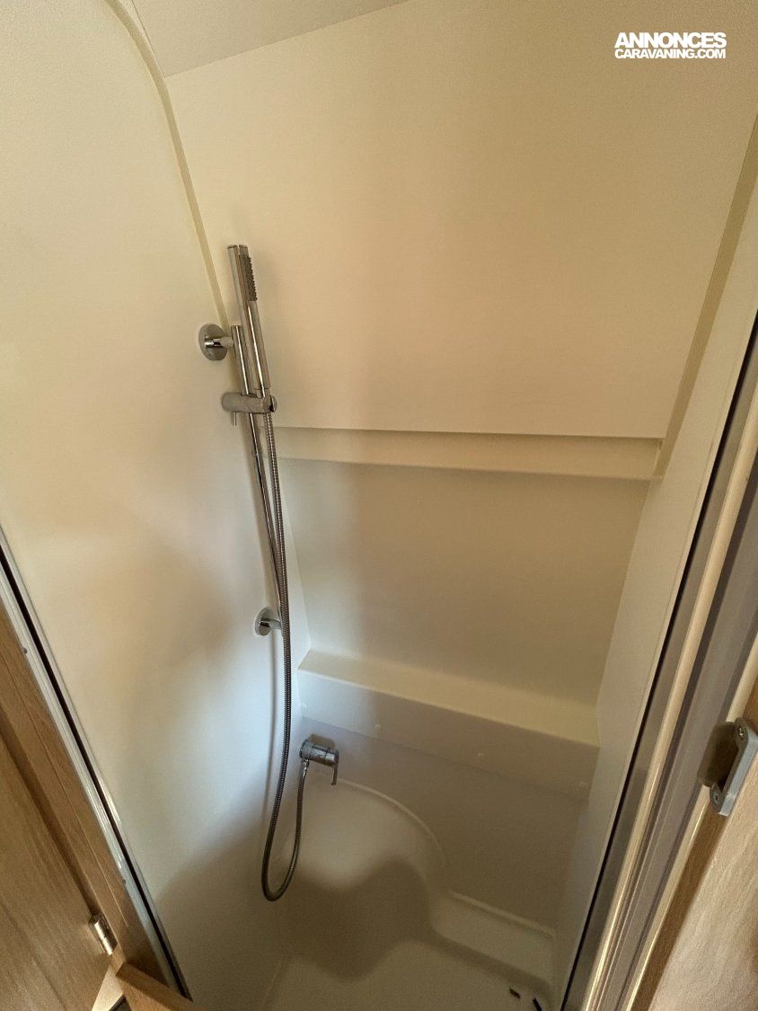 Store plissés de pare brise, Douche et WC séparé (douche Vario), Store extérieur, Panneau solaire 150w, Chauffage / Chauffe eau GAZ TRUMA, Lit arriere 195x135, Lit de pavillon 190x120, Frigo à compression 146L, Caméra de recul, Autoradio double DIN avec caméra intégré