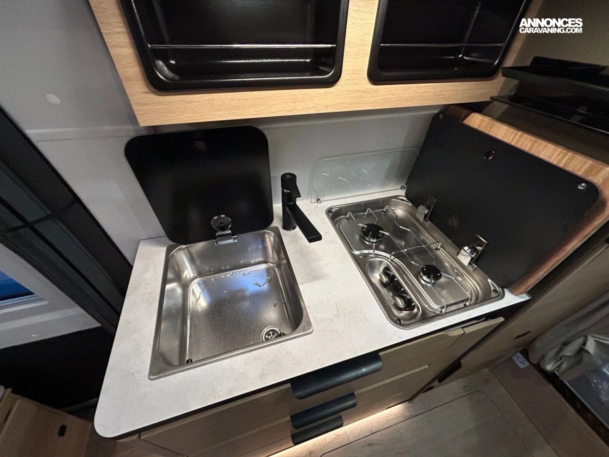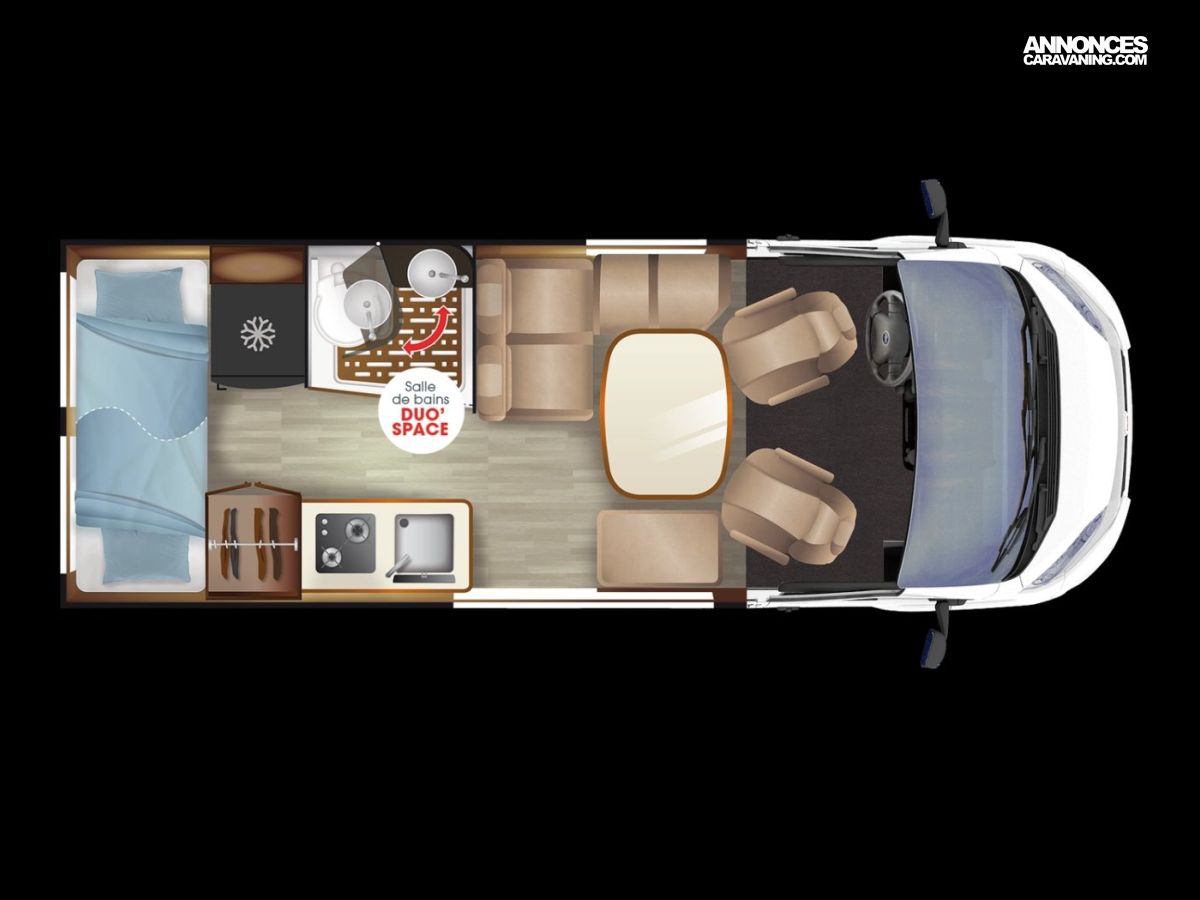PACK CONFORT : Porte moustiquaire ouvrant latéral, Commandes radio, Haut-parleurs salon, Douchette extérieure avec eau chaude/eau froide, Traction+ avec Hill Descent Control, Pneus all season, 2e clef télécommandée, Commandes au volant pour radio, Station multimédia DAB PIONEER® avec écran 6,8”, Caméra de recul avec écran de contrôle intégré au tableau de bord, Stores pare-brise et baies cabine plissés.
