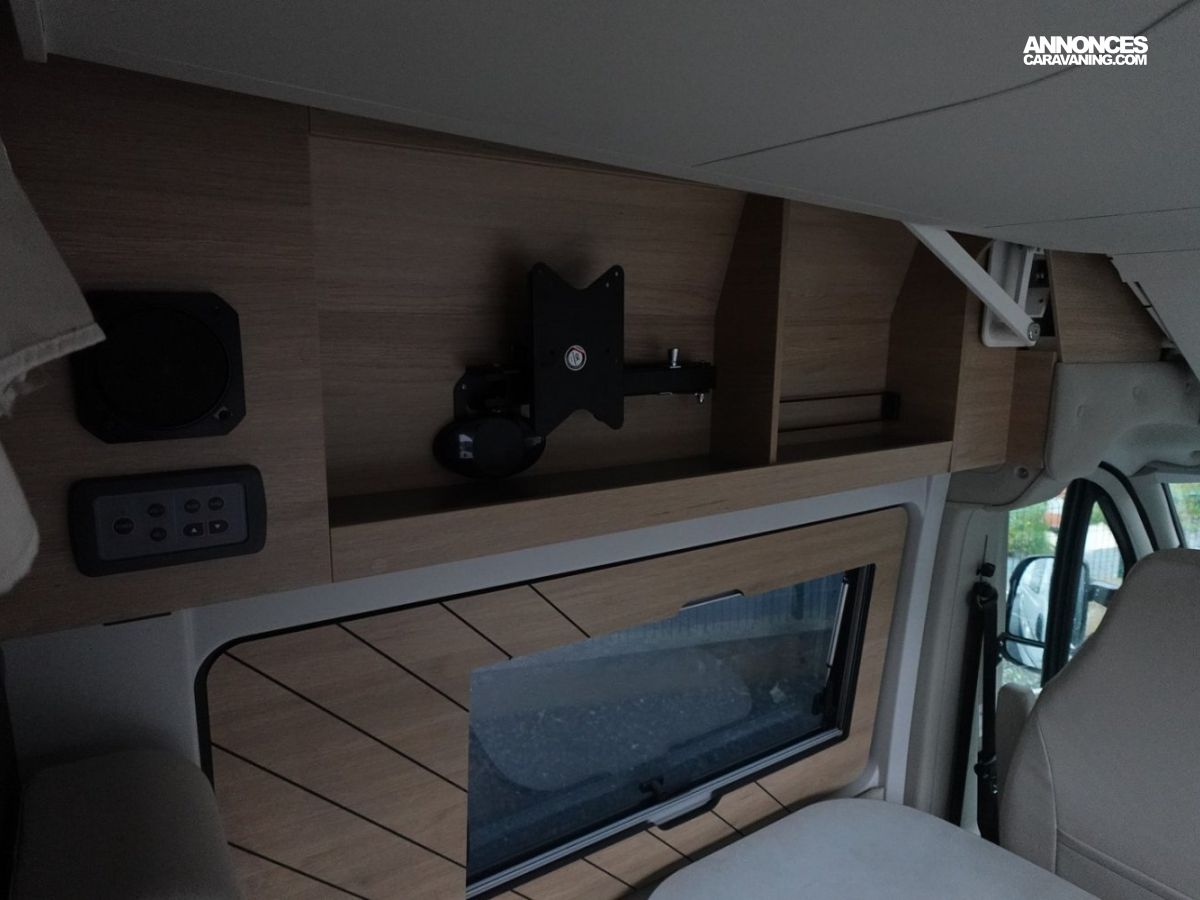 (Commandes au volant pour la radio, Pneus 4 saisons, Porte moustiquaire ouvrant latéral, Haut-parleurs salon et chambre, Station multimédias Pioneer avec fonctions APPLE CAR PLAY et ANDROID AUTO, Caméra de recul, 2ème clef télécommandée, Commandes radio déportées dans la cellule, Traction +, Hill Descent, Stores pare-brise et baies cabine isothermes, Douchette extérieure avec eau chaude/eau froide)