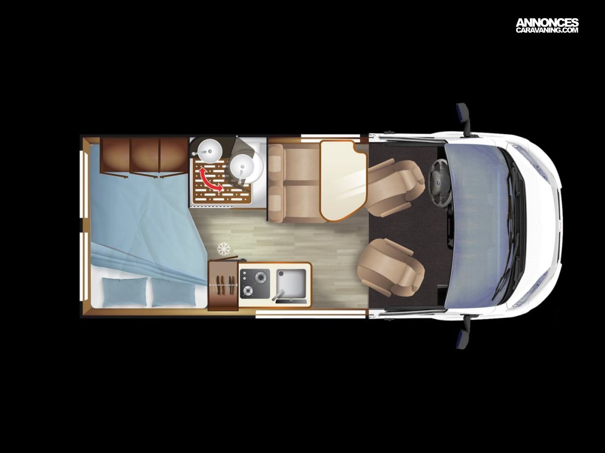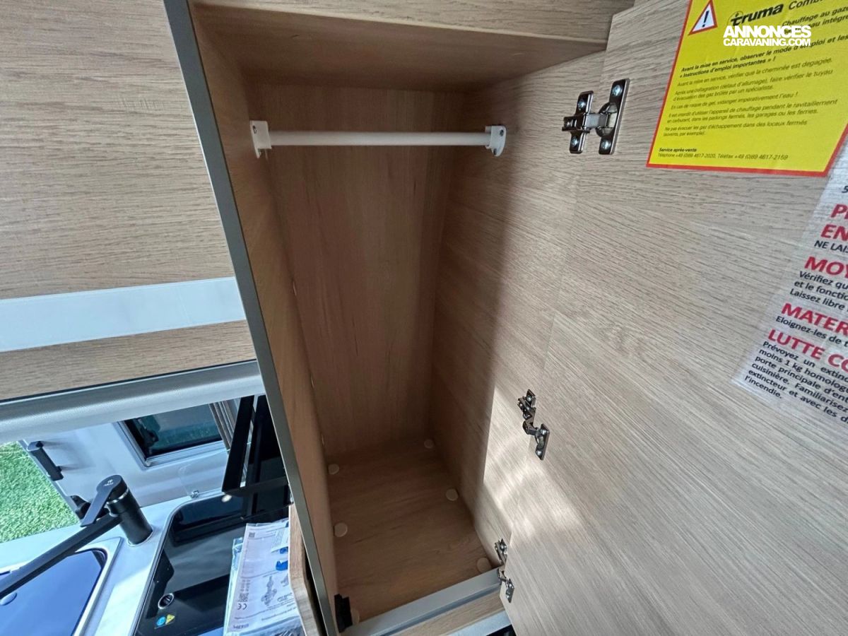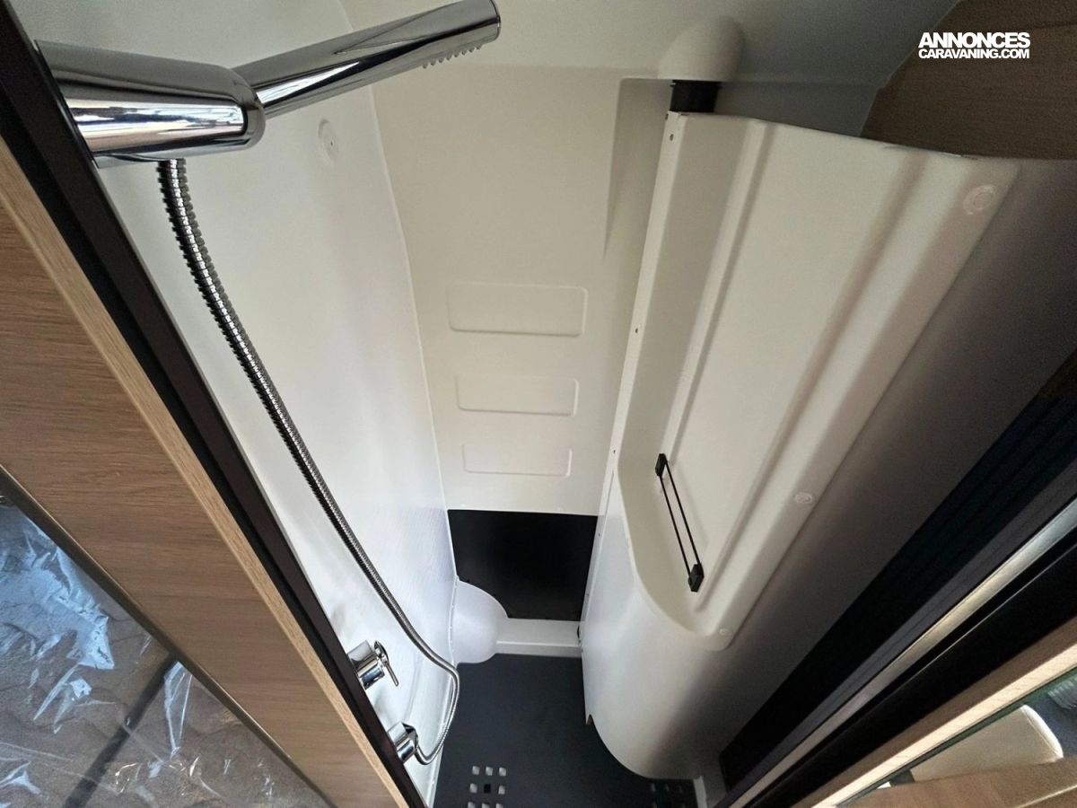 Commandes au volant pour radio Pneus all season 3PMSF Porte moustiquaire ouvrant latéral Haut-parleurs salon et chambre Station multimédia DAB PIONEER avec écran 6,8" et fonctions APPLE CAR PLAY/ANDROID AUTO Caméra de recul avec écran de contrôle intégré au tableau de bord 2e clef télécommandée Commandes radio (ON/OFF, volume et stations) déportées dans la cellule Traction+ avec Hill Descent Control Stores pare-brise et baies cabine plissés Douchette extérieure avec eau chaude/eau froide