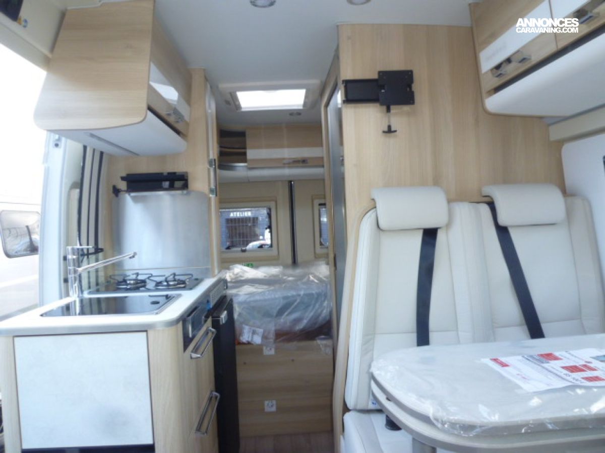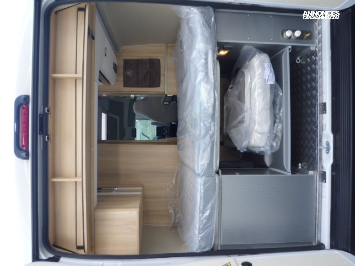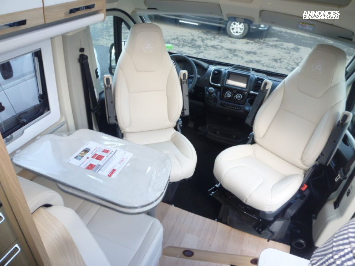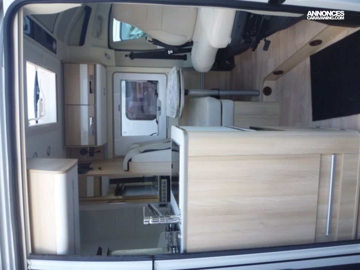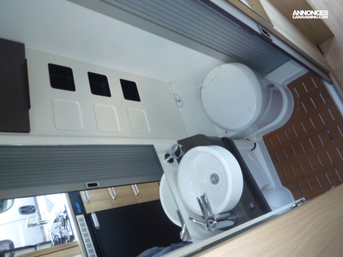 Cuisine en long, Douche à vario, Lit arrière transversal, Lit dînette avant, Salon avant sièges pivotants, WC Cassette.