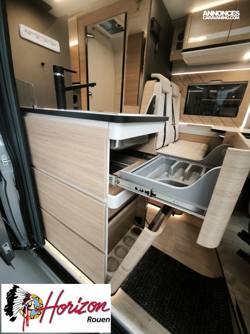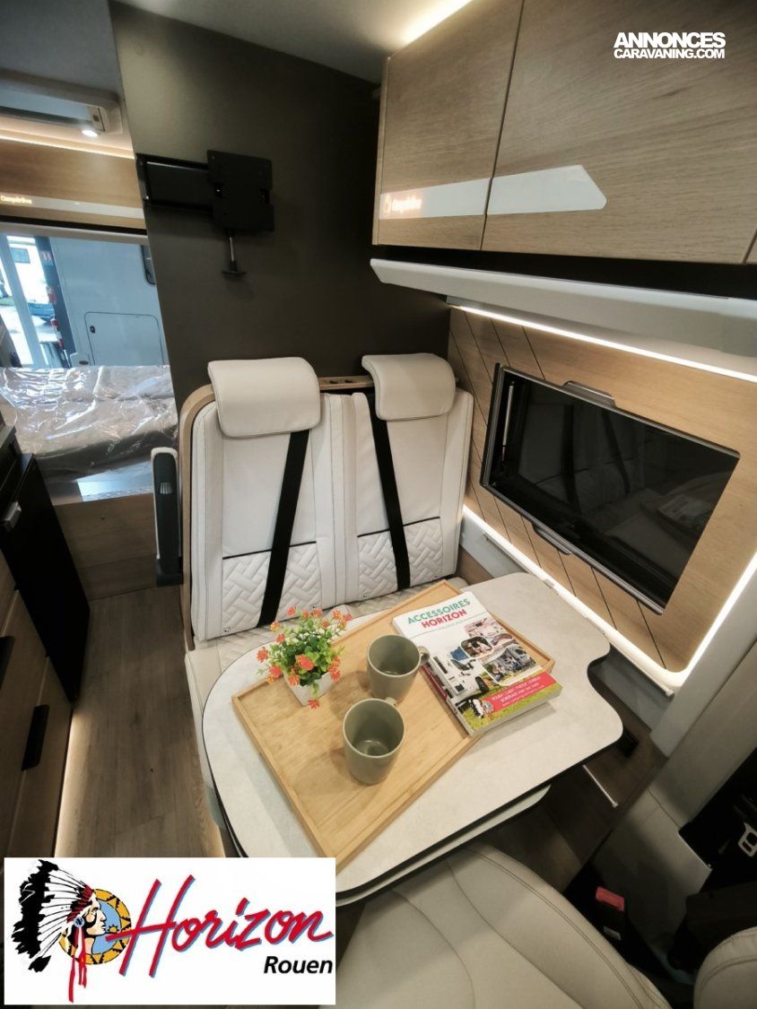 BOITE AUTOMATIQUEKIT LINOPACK SMART : Jantes 16'' en alliage léger bi-ton, volant confort, habillage gris sur aérateursTPMS (contrôle de pression des pneus automatique)PACK LED ASSIST : Feux avant 100% LED, allumage automatique des feux et des essuie glaceFrein de stationnement électriquepare choc avant couleur carrosserie + skid plate noire + feux anti brouillardPeinture carrosserie métallisée Gris ArtenseToit panoramique SkyviewSellerie au CHOIXRenfort pneumatique suspension essieu arrière sans compresseurCouchage dinette 1 placePanneau solaire 150 Wdéco SAPHIR -prise gaz extérieureTRUMA Combi 4 DIESEL avec kit altitude et commande de chauffage CP PLUSCommandes au volant pour radioPneus all season 3PMSFPorte moustiquaire ouvrant latéralHaut-parleurs salon et chambreStation multimédia DAB PIONEER® avec écran 6,8” et fonctions APPLE CAR PLAY/ ANDROID AUTOCaméra de recul avec écran de contrôle intégré au tableau de bord2e clef télécommandée (PLIP)Commandes radio (ON/OFF, volume et stations) déportées dans la celluleTraction+ avec Hill Descent Control (aide au maintien de la vitesse en descente)Stores pare-brise et baies cabine isothermesDouchette extérieure avec eau chaude /eau froide