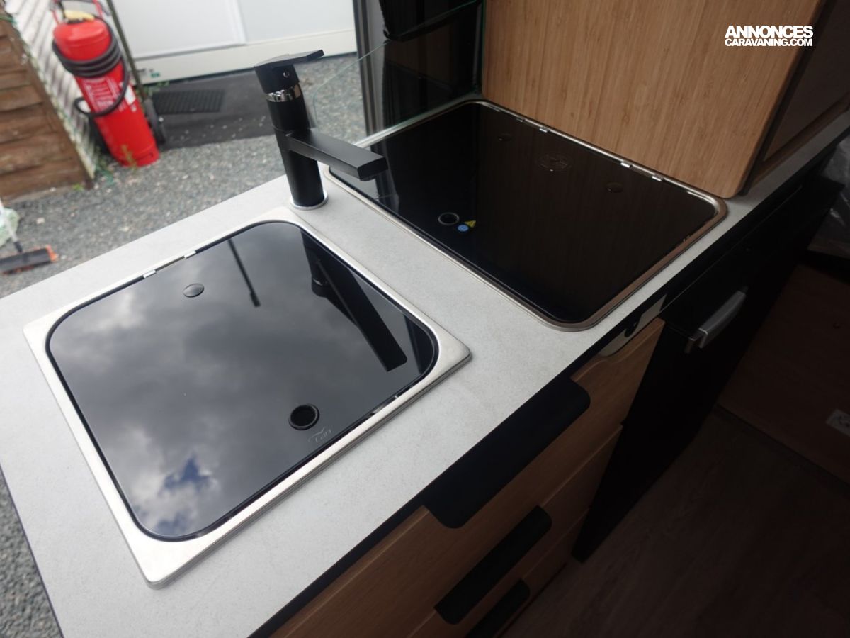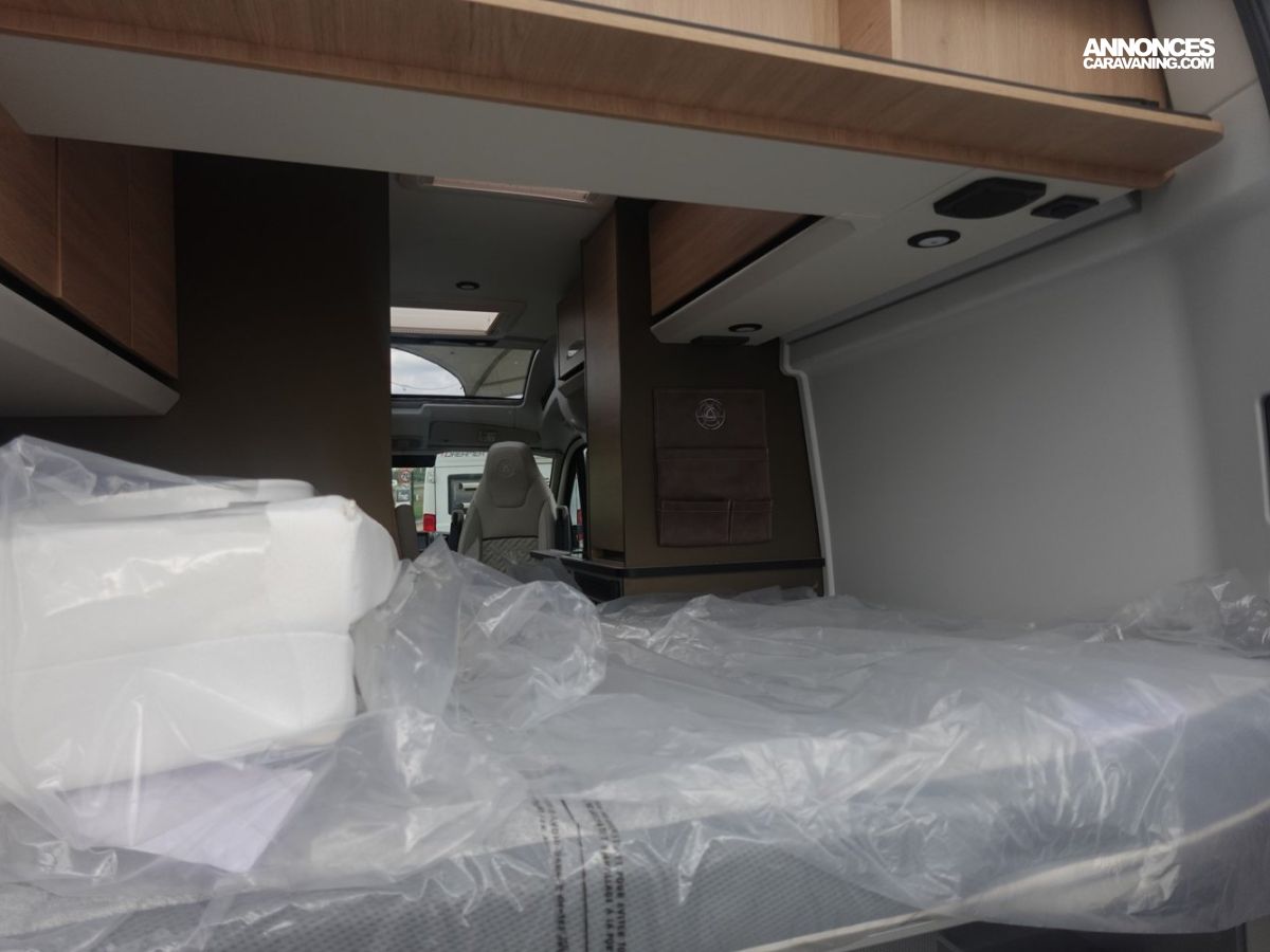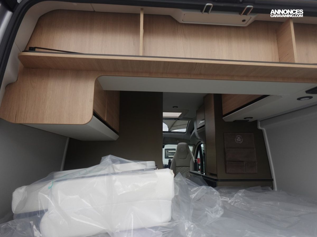 (Ambiance mobilier au choix, Sellerie au choix, Truma Combi 4 DIESEL avec kit altitude et commande de chauffage CP PLUS, 2ème batterie cellule AGM, Jantes 16 pouces en alliage léger, Volant cuir, Habillage gris sur aérateurs, TPMS, Feux avant 100 % LED, Allumage automatique des feux et des essuie-glaces, Frein de stationnement électrique, Pare-chocs avant couleur carrosserie, Skid plate noire, Feux anti-brouillard, Peinture métallisée Gris Artense, Toit panoramique SKYVIEW, Renfort pneumatiques suspension essieu arrière, Couchage dinette, Panneau solaire 150 W, Déco Saphir, Prise gaz extérieure)