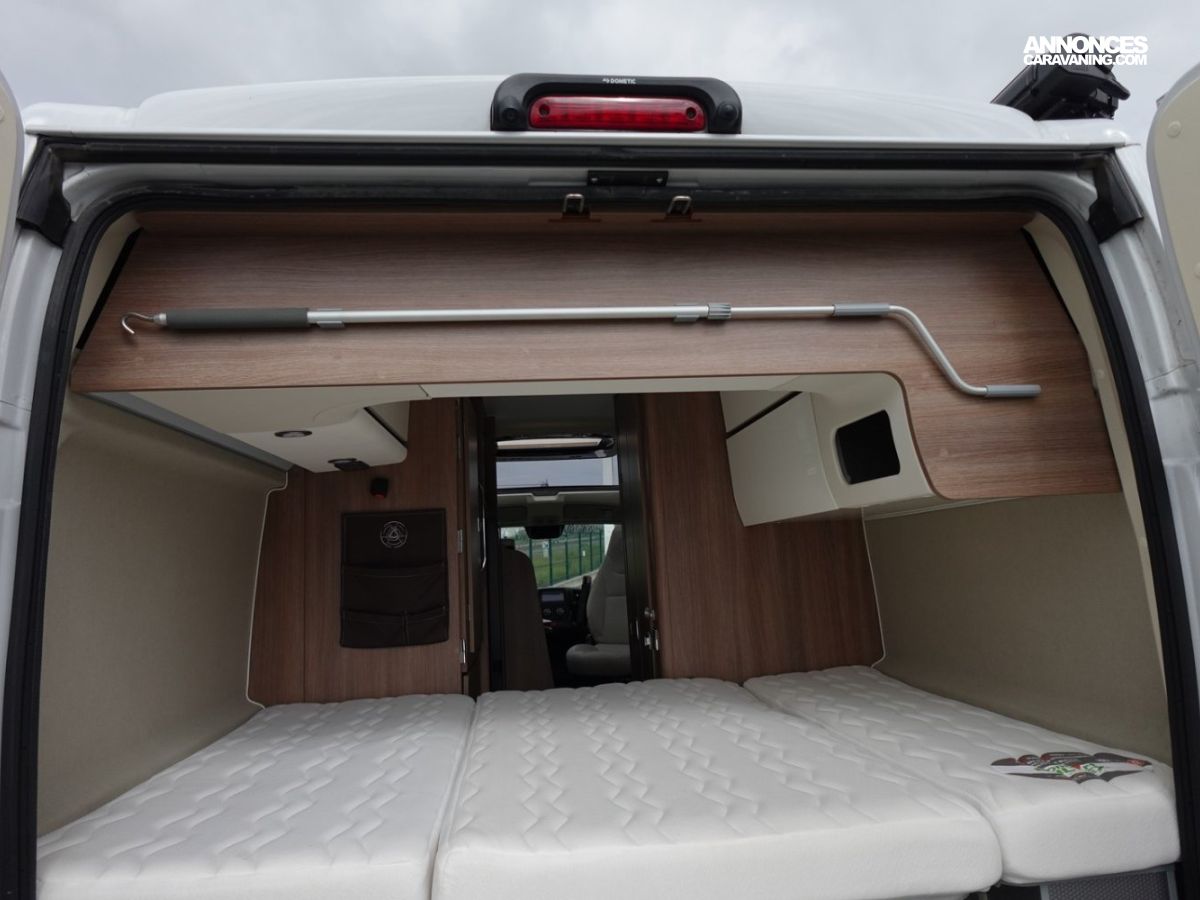 Magnifique fourgon aménagé comprenant un salon avant panoramique, un grand réfrigérateur, une douche indépendante de l’espace WC/lavabo et un lit arrière transversal. Le tout en série limitée sur-équipé.