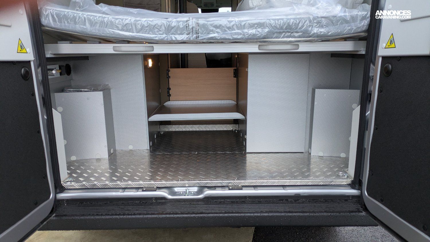 Couchage : Lit permanent arrière (195 x 137 cm), Lit de pavillon (190 x 125 cm)