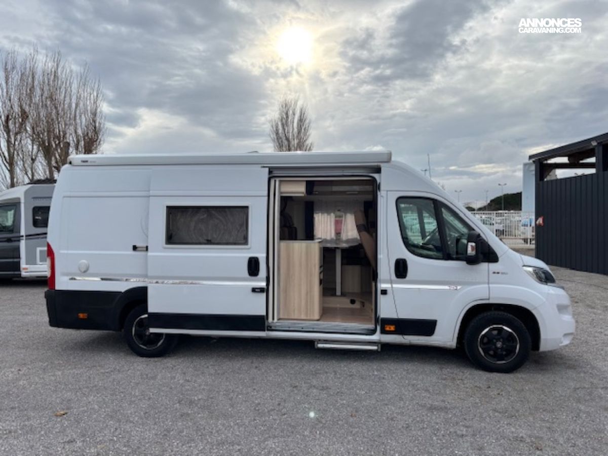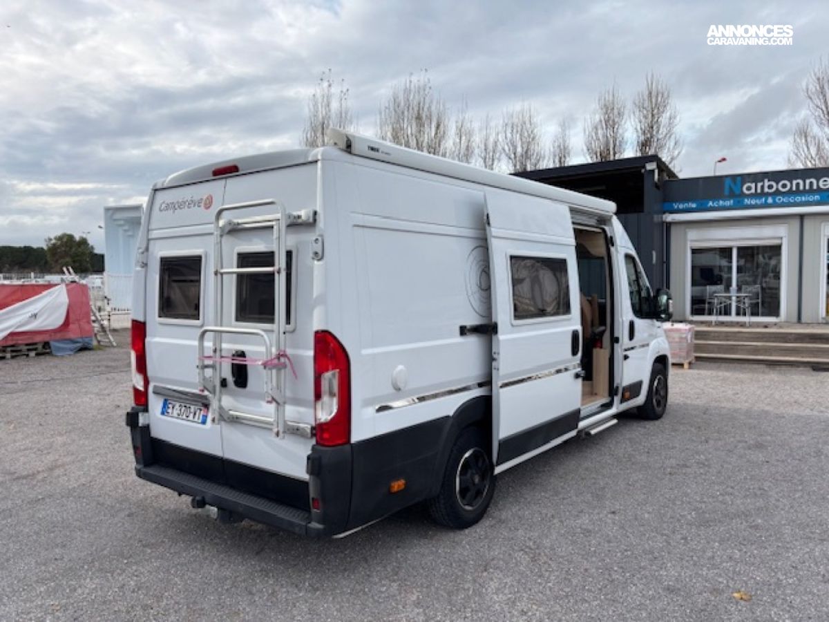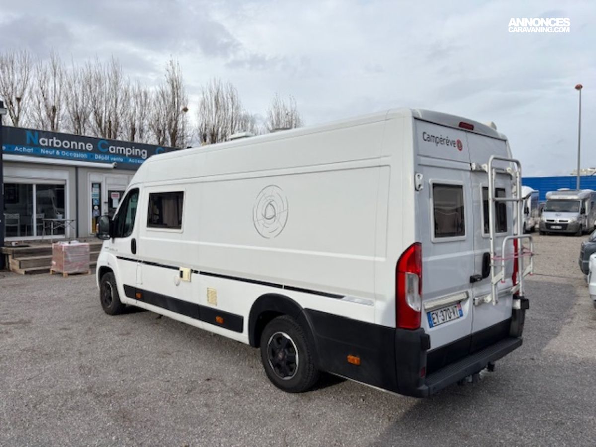 Un fourgon de 6m36, en excellent état, tout équipé, motorisé en 150 ch et signé CAMPEREVE, marque française de chez Rapido reconnue pour son confort, sa qualité de fabrication et sa fiabilité.
