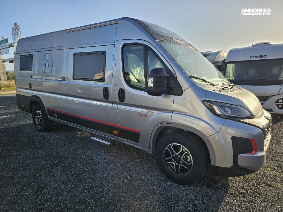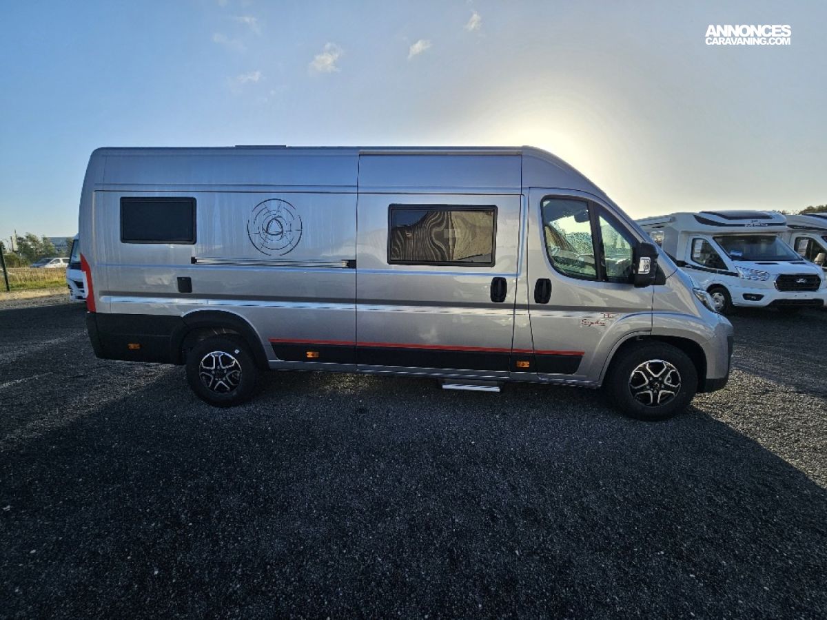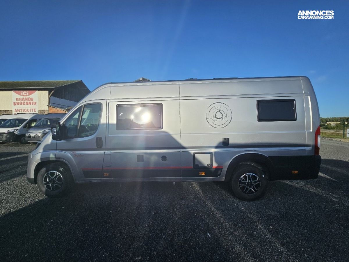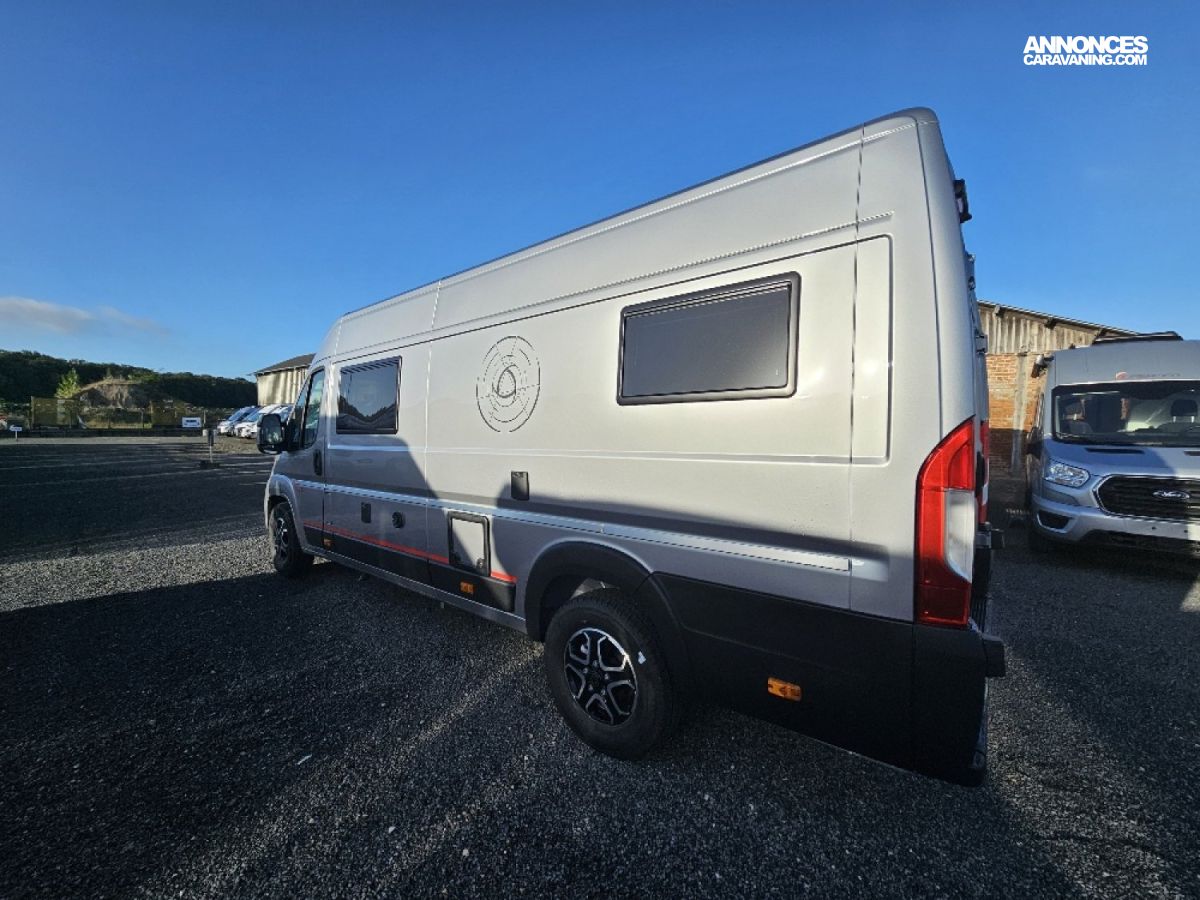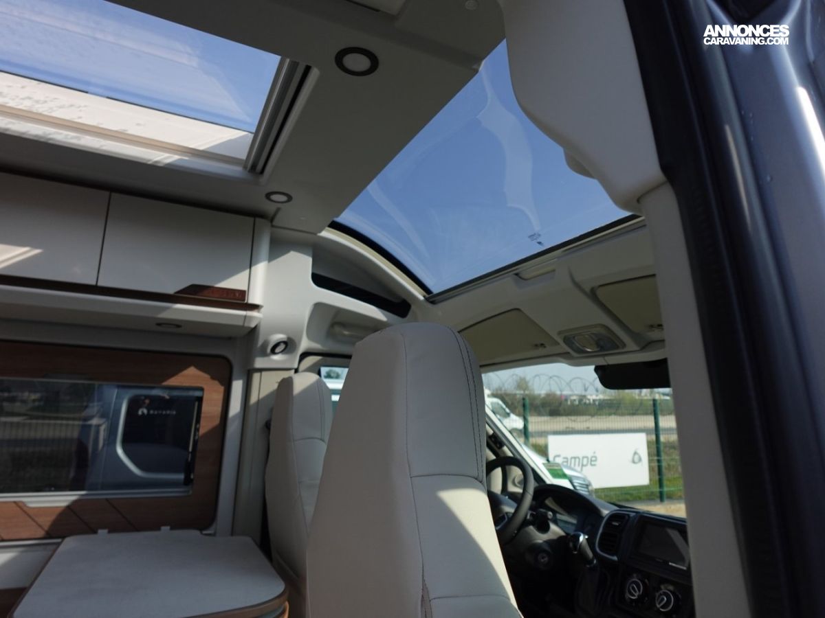 (Ambiance mobilier au choix, Sellerie au choix, Truma Combi 4 DIESEL avec kit altitude et commande de chauffage CP PLUS, 2ème batterie cellule AGM, Jantes 16 pouces en alliage léger, Volant cuir, Habillage gris sur aérateurs, TPMS, Feux avant 100 % LED, Allumage automatique des feux et des essuie-glaces, Frein de stationnement électrique, Pare-chocs avant couleur carrosserie, Skid plate noire, Feux anti-brouillard, Peinture métallisée Gris Artense, Toit panoramique SKYVIEW, Renfort pneumatiques suspension essieu arrière, Couchage dinette, Panneau solaire 150 W, Déco Saphir, Prise gaz extérieure)