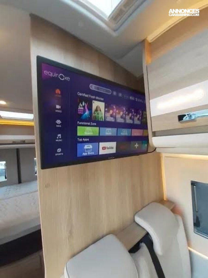 Divertissement à bord : télévision connectée, station multimédia Pioneer et haut-parleurs intégrés pour une ambiance sonore immersive.