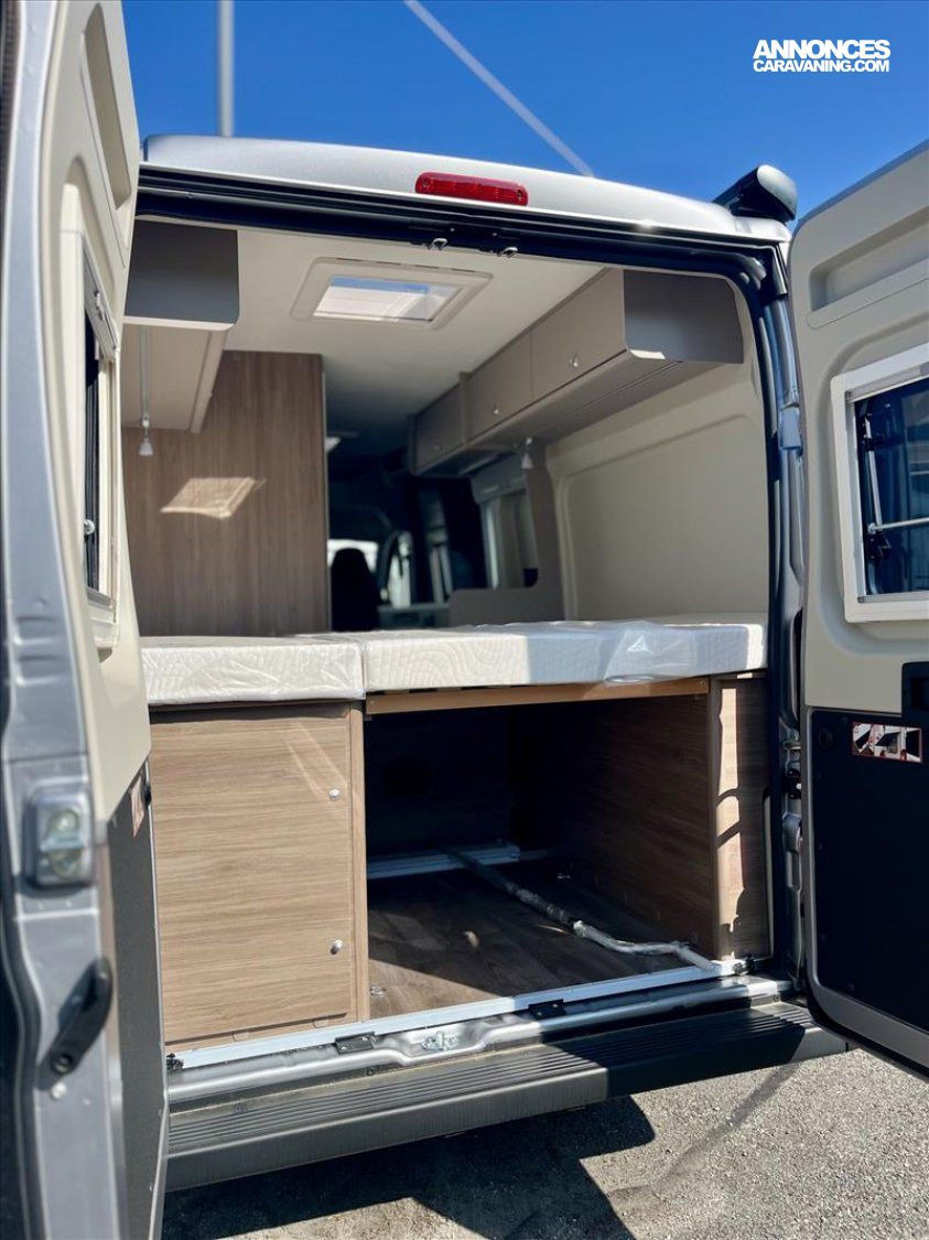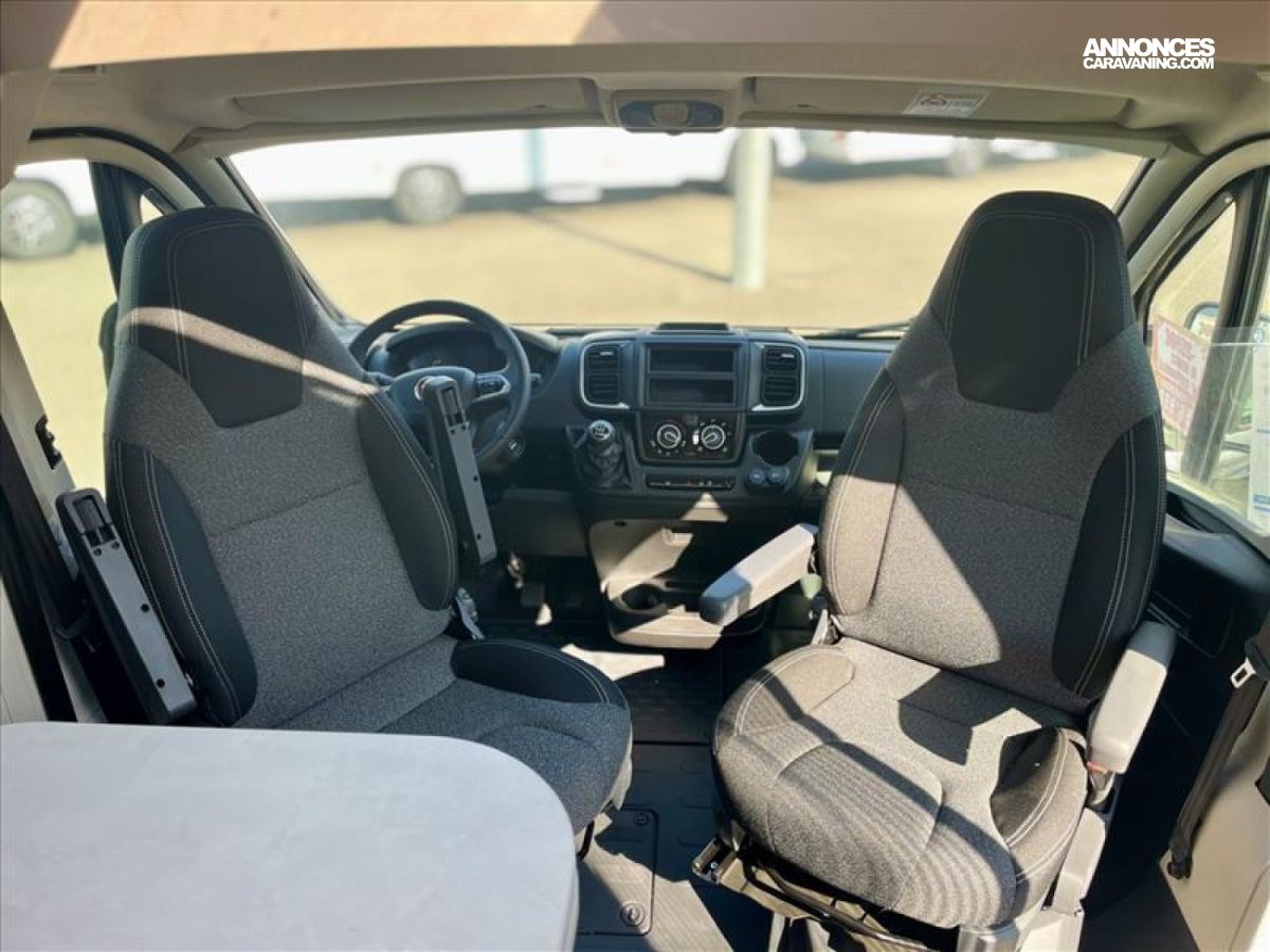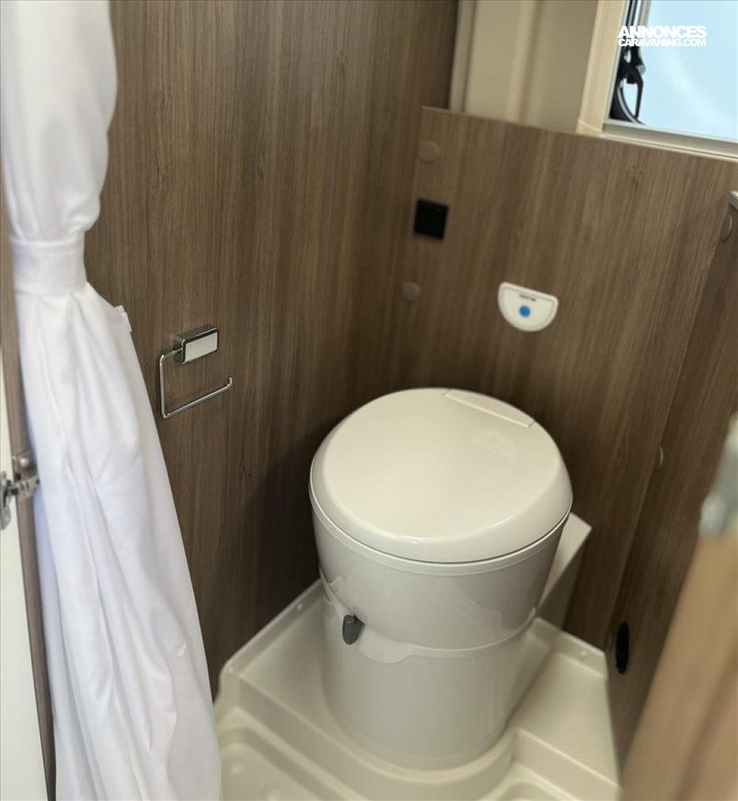 Caiilebotis de douche en bois, Chauffage gazole COMBI 4D avec capteur de pression intégré, Dinette en couchage, Port USB pour rail multifonction, Précabalge pour panneau solaire, Support TV + précablage 12V