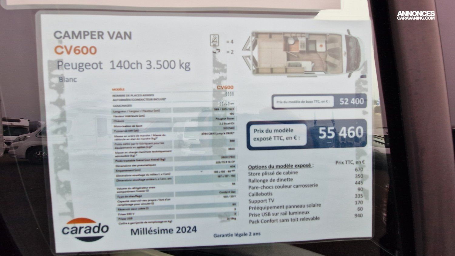 • Carte grise et plaques : 360 € en supplément