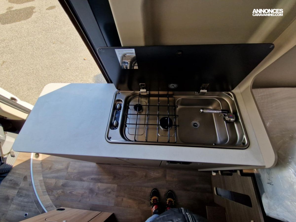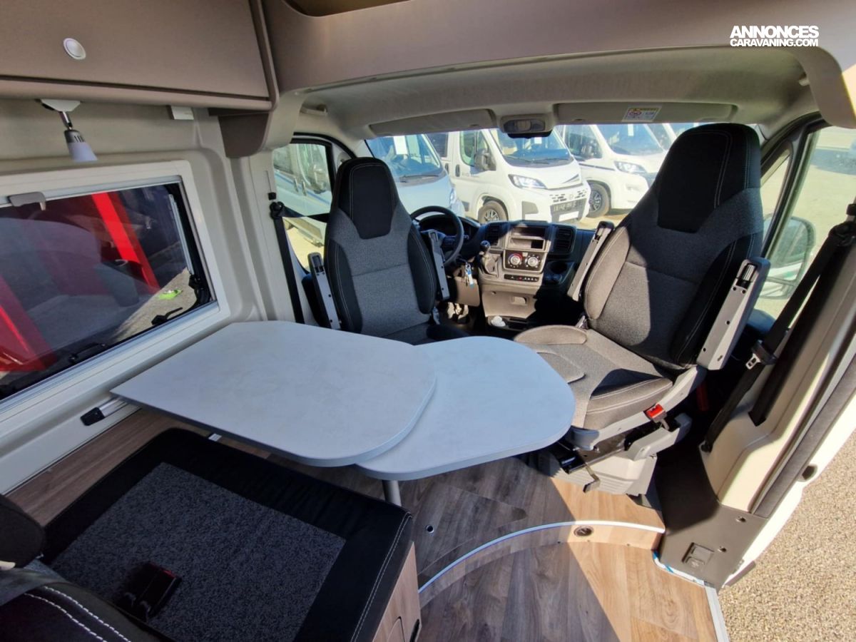 - Pack Confort (lanterneau 700x500, marchepieds électriques, fenêtre dans la salle d’eau, rallonge de table)