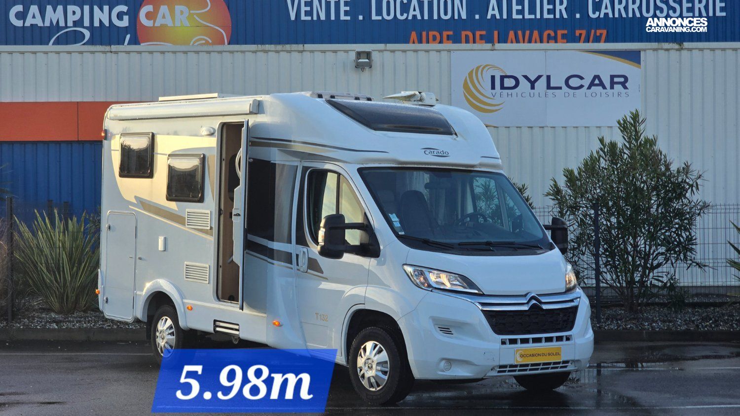 Découvrez ce camping-car Profilé CARADO de 5.98mètres, compact et parfaitement agencé, offrant confort et autonomie.