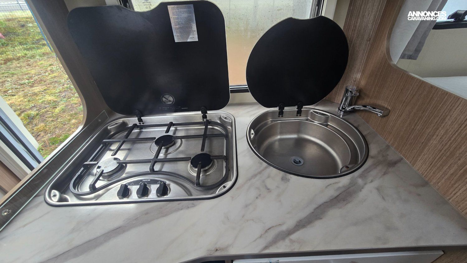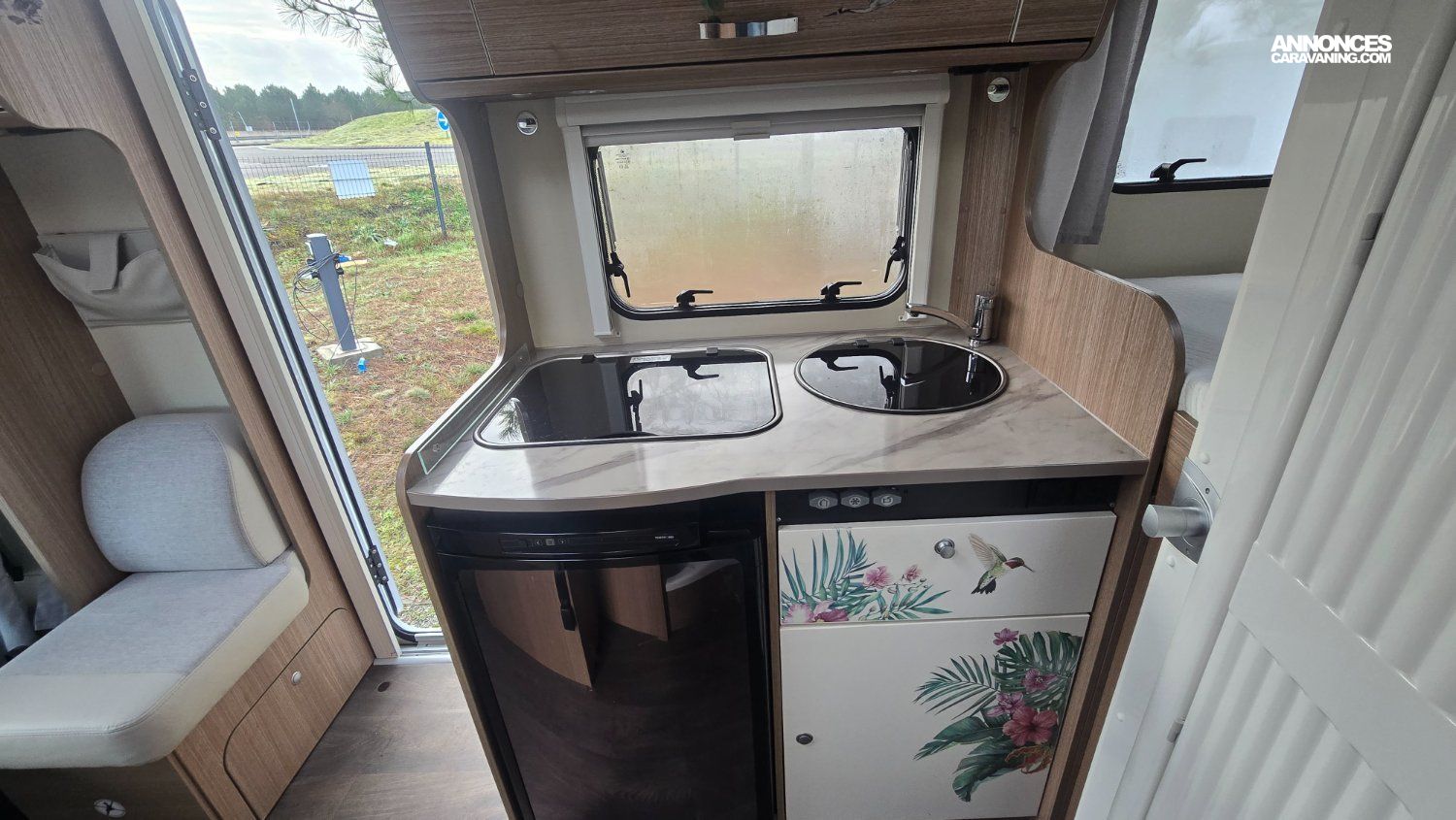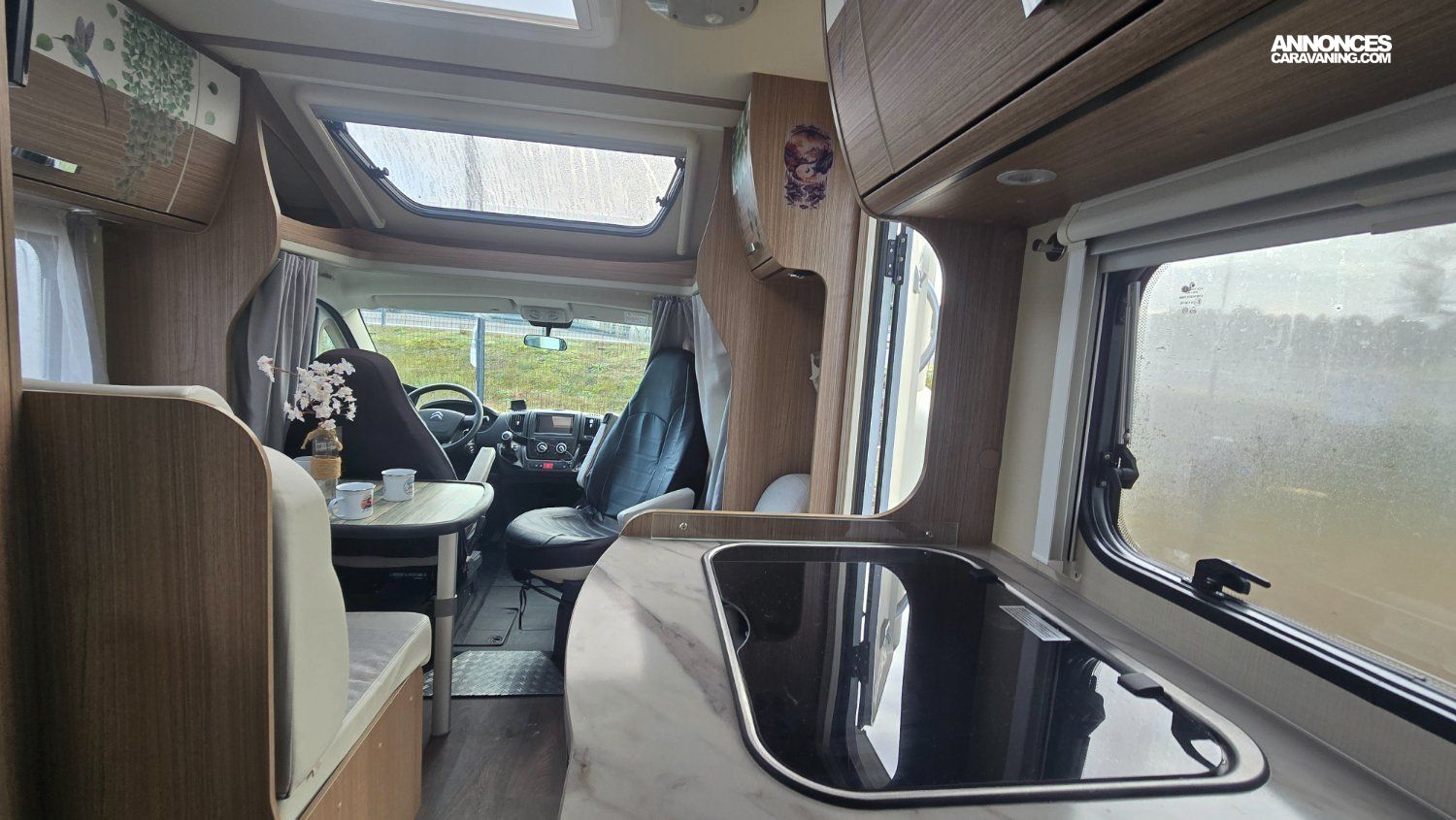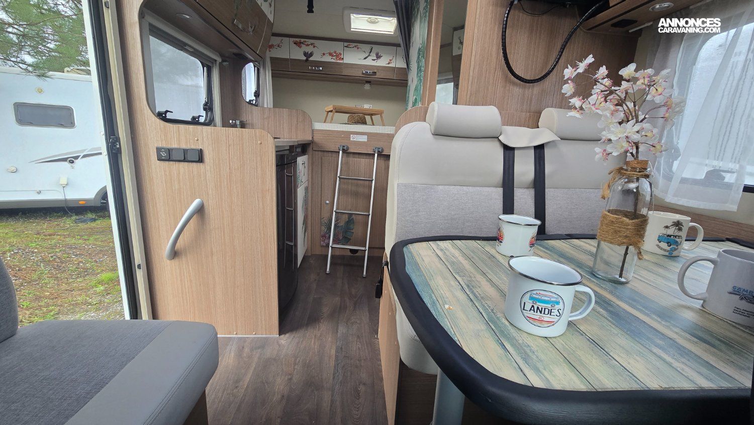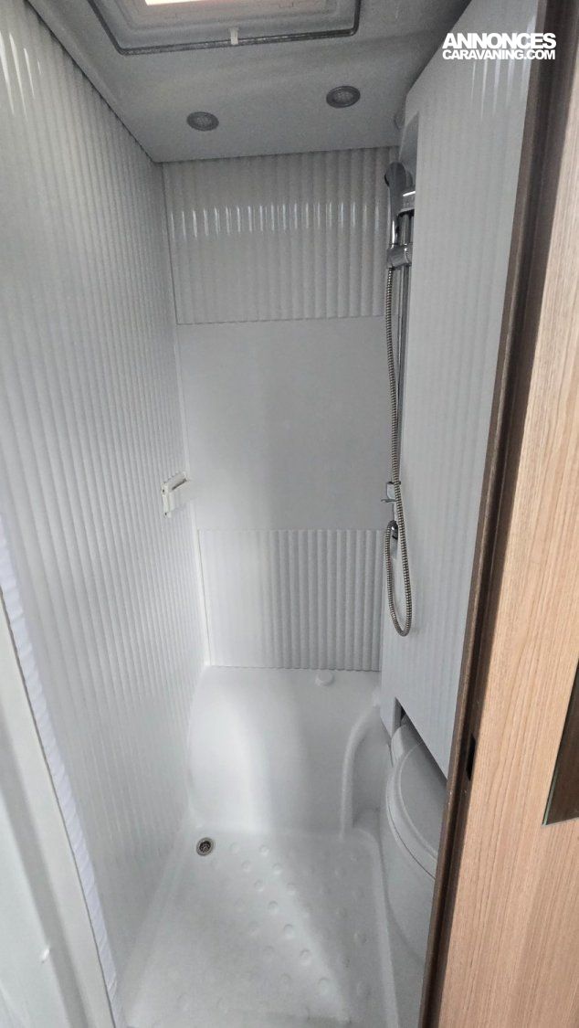 Il dispose d'un salon, d'une cuisine équipé avec réfrigérateur, d'un lit arrière ainsi que d'une grande soute.