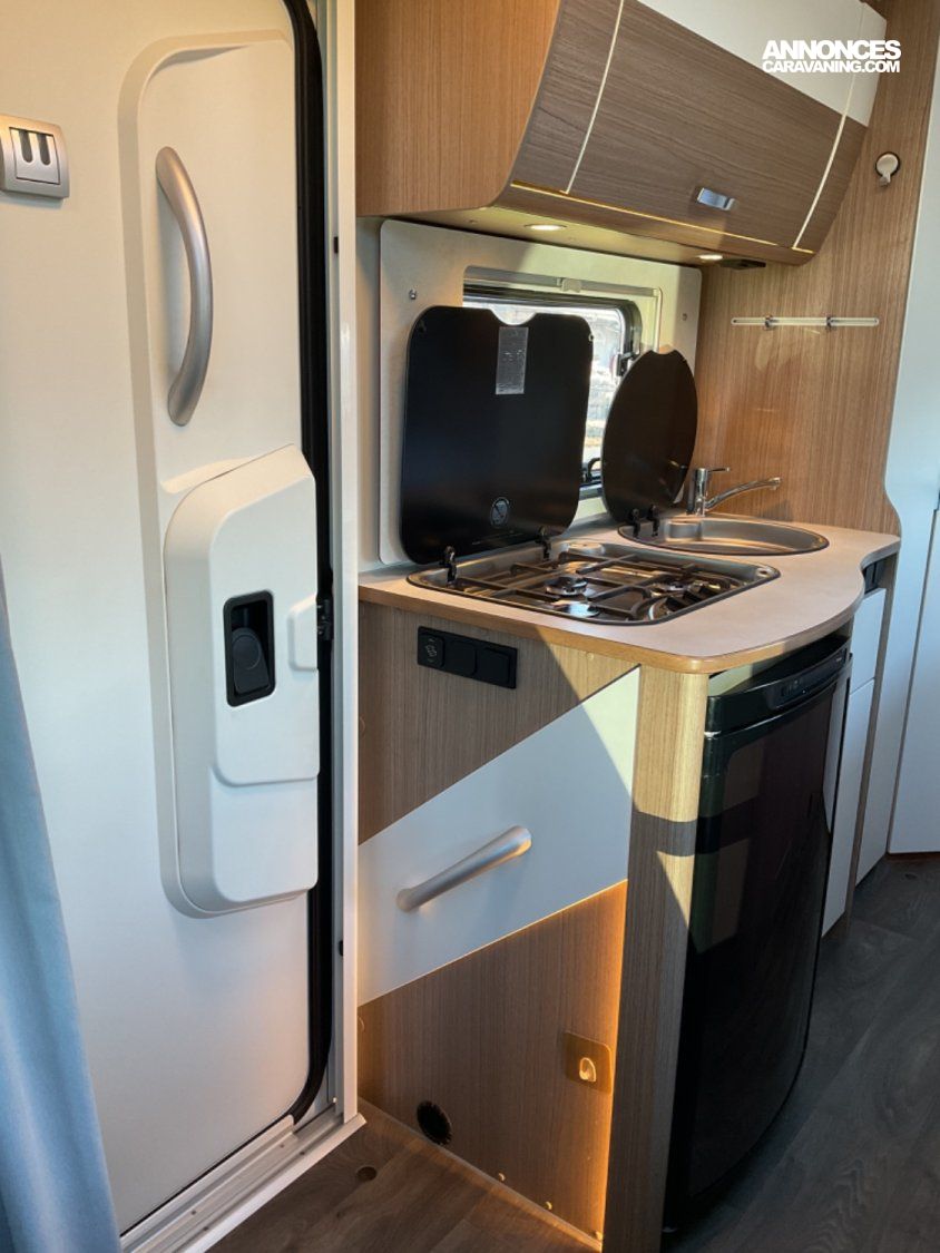 CELLULE: Réfrigérateur trimixte auto., Lanterneau+Mini-Heki, Foyers Cuisson(3) gaz, Eau-chaude et chauffage Boiler TRUMA combi gaz, Marche-pied élect., Serrure de sécurité, Pack Télévision/dvd + Antenne SAT TELECO, Porte moustiquaire, Batterie Lithium 150 Ah, Chargeur DC 40 AMP, Eclairage Led.