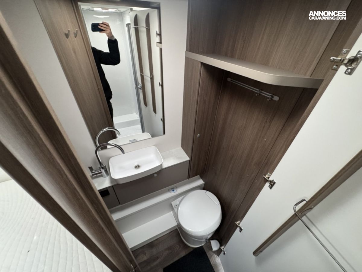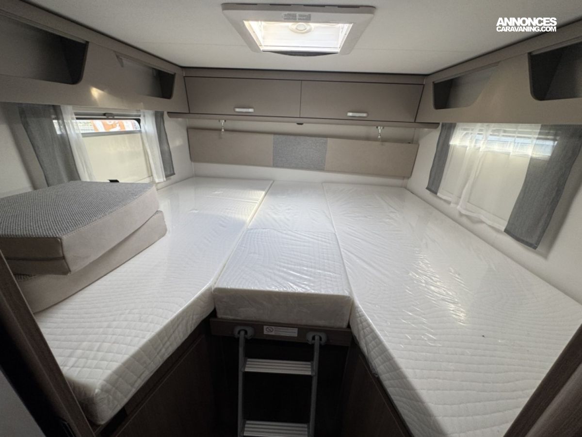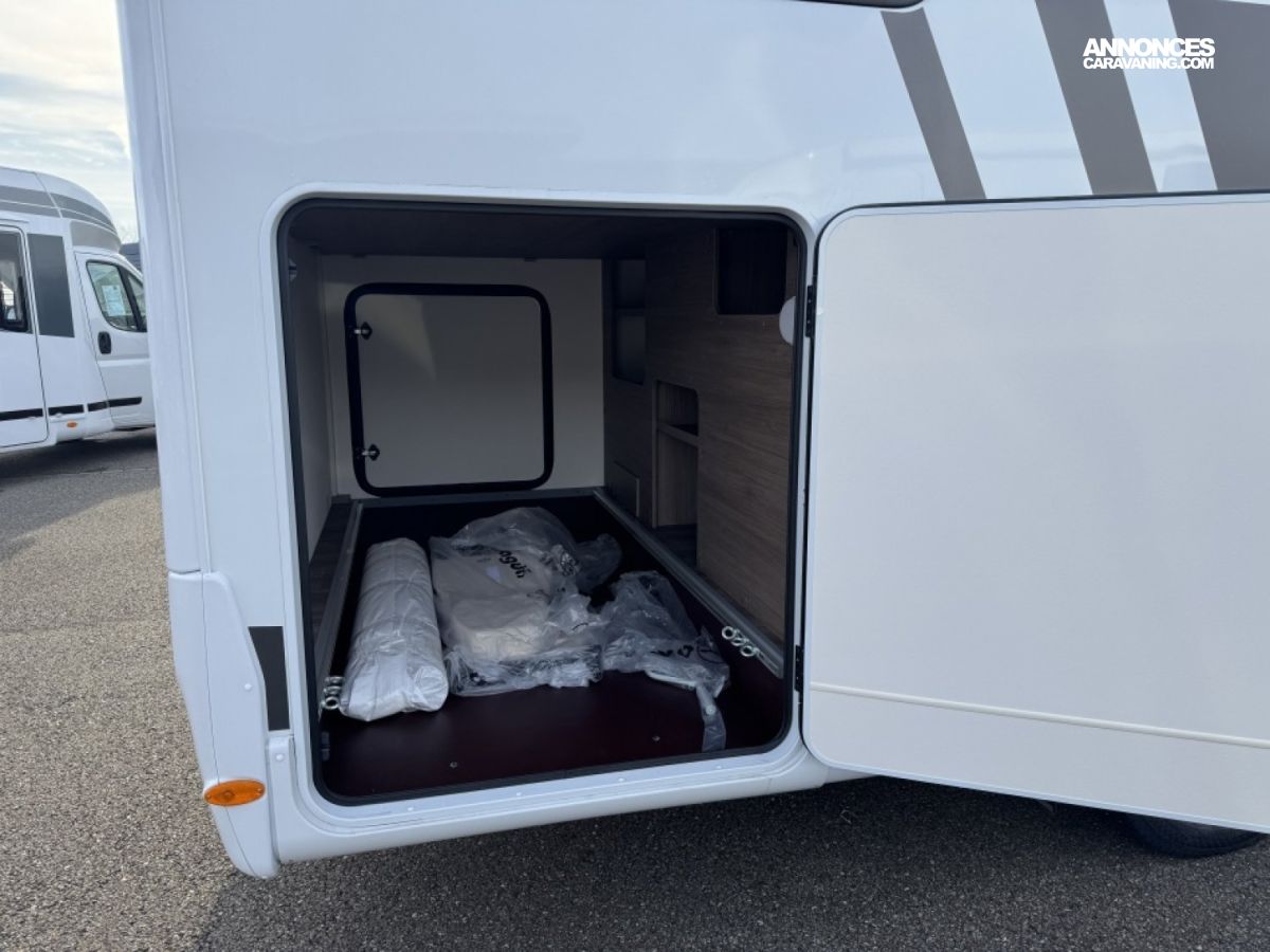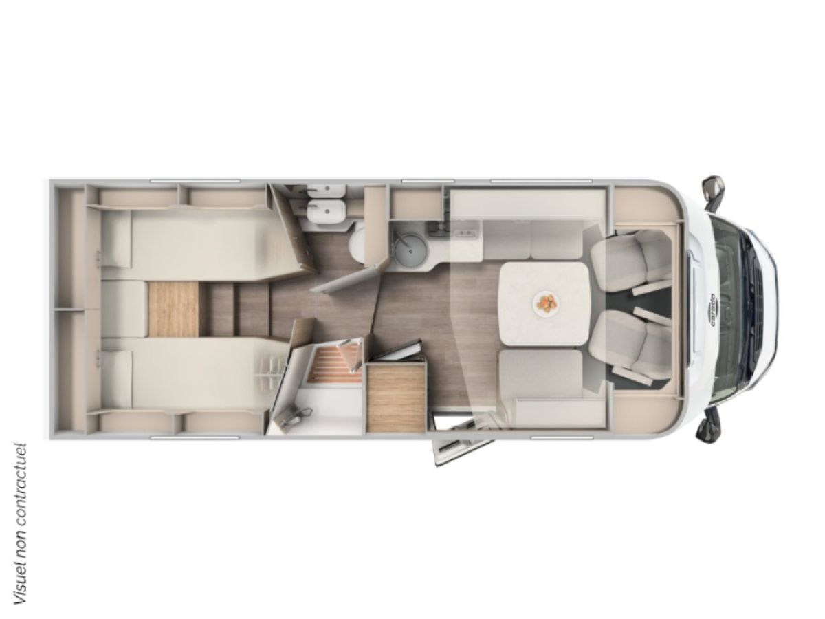 Avec ses 7,39 m de long, son implantation avec lits jumeaux, son lit pavillon, et sa grande soute garage traversante, il s’adresse aussi bien aux couples qu’aux familles recherchant un véhicule fonctionnel, lumineux et confortable.