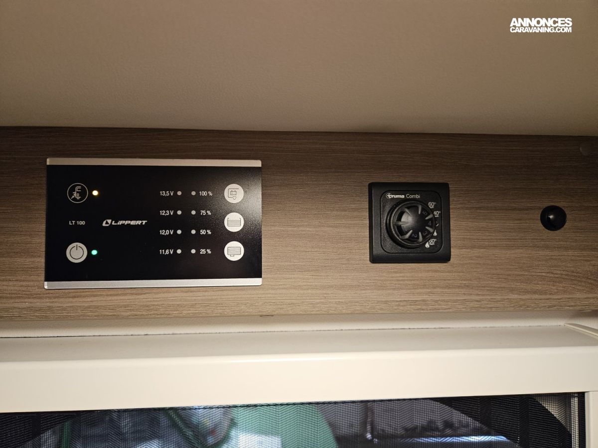 CHAUFFAGE COMBI TRUMA 4, GAZINIERE 2 FEUX, FENETRE SDB, ECLAIRAGE LED, MOUSTIQUAIRE DE PORTE CELLULE, REFRIGERATEUR TRI MIX, STORES PLISSES DE CABINE, SALON FACE A FACE, FREEZER, CHAUFFE-EAU GAZ