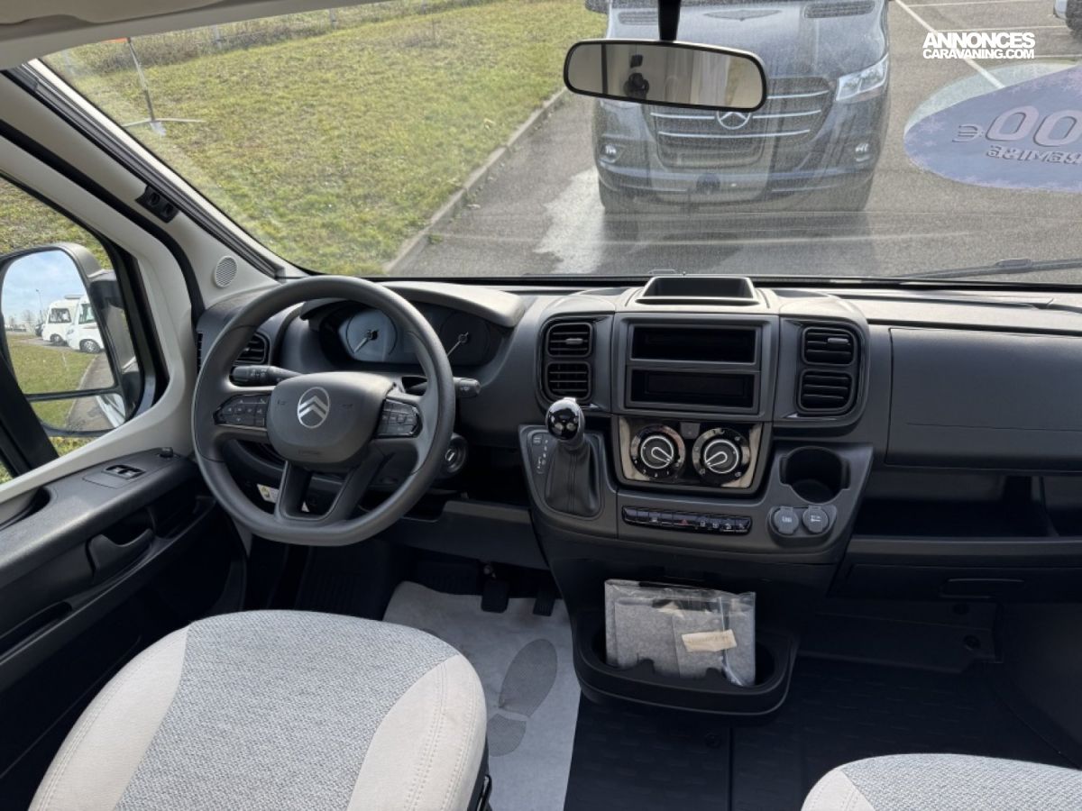 Avec son Citroën Jumper 2.2L HDi 140 ch équipé d’une boîte automatique, il offre une conduite fluide, agréable et sécurisante, aussi bien en ville que sur longs trajets. Grâce à son implantation intelligente, le V132 propose un lit transversal confortable, une salle d’eau Vario modulable, une cuisine fonctionnelle, et un salon lumineux. Sa finition soignée, son SkyDome panoramique, et son équipement complet en font un modèle particulièrement recherché pour voyager à deux, tout en conservant la possibilité d’un 3ᵉ couchage.
