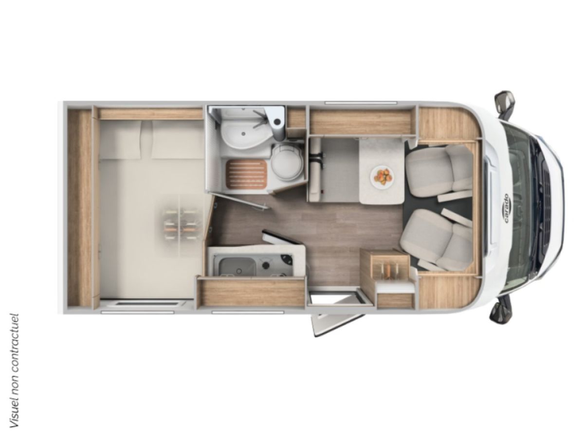 Le CARADO V132 est un camping-car profilé compact nouvelle génération, idéal pour celles et ceux qui recherchent maniabilité, confort et modernité dans moins de 6 mètres.