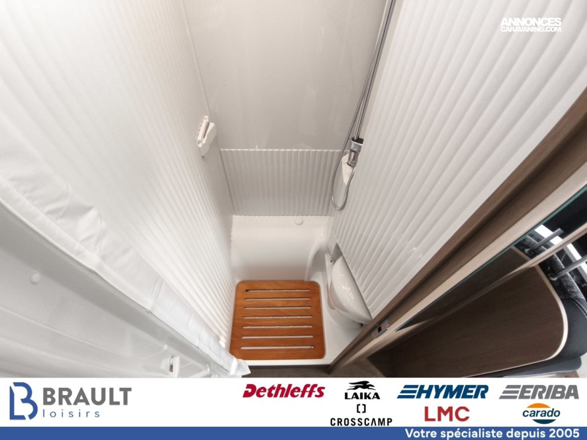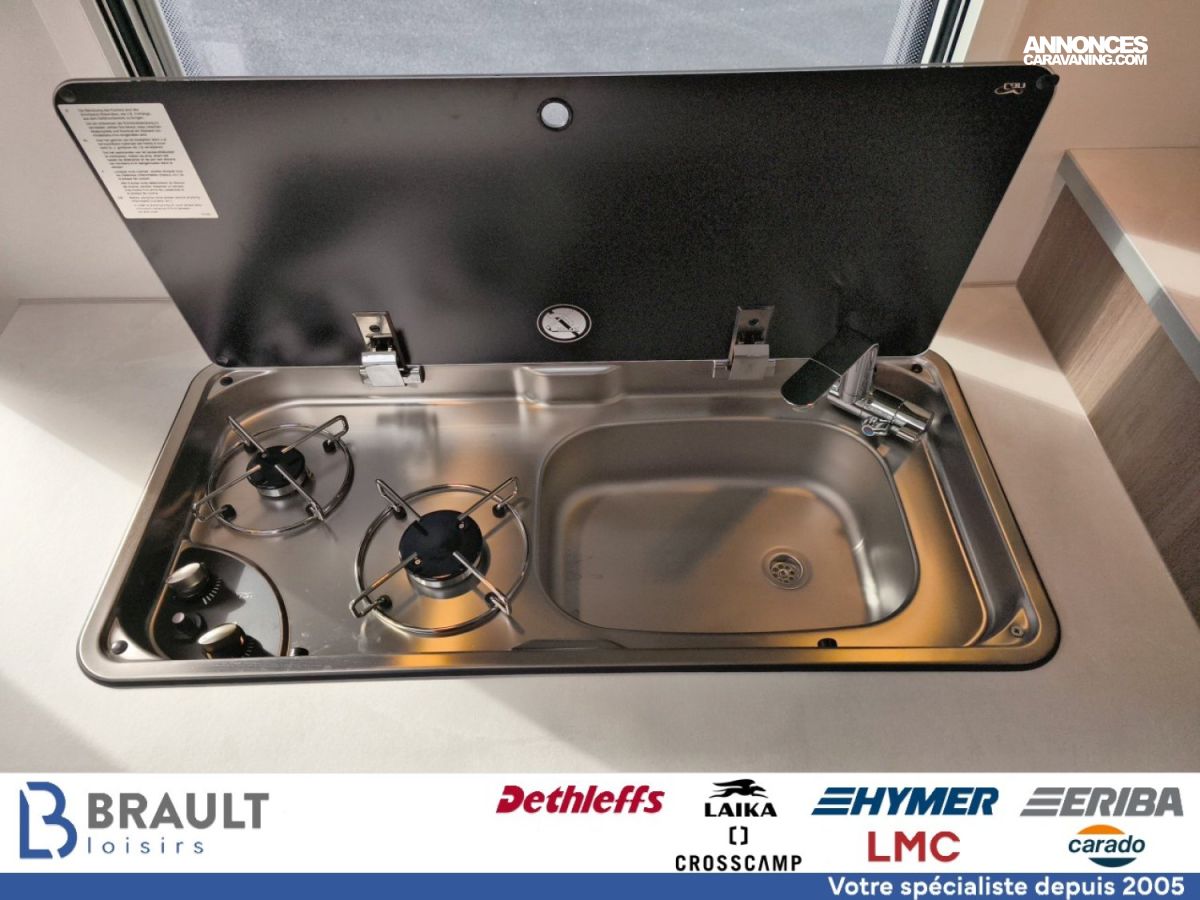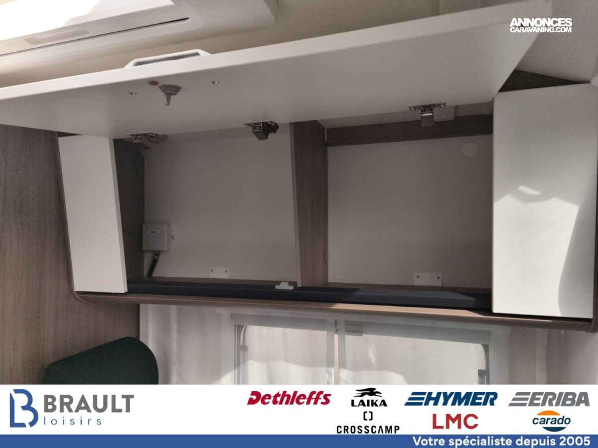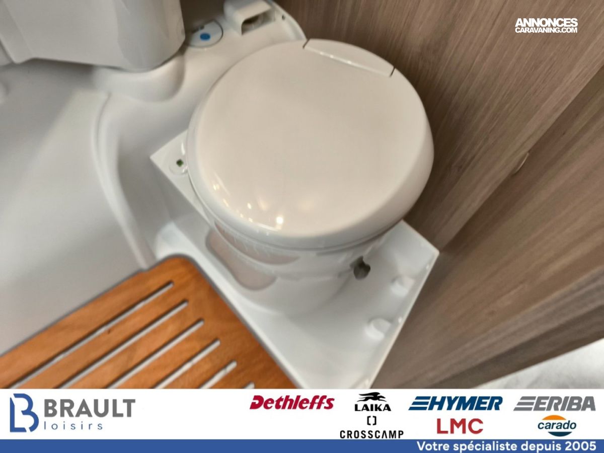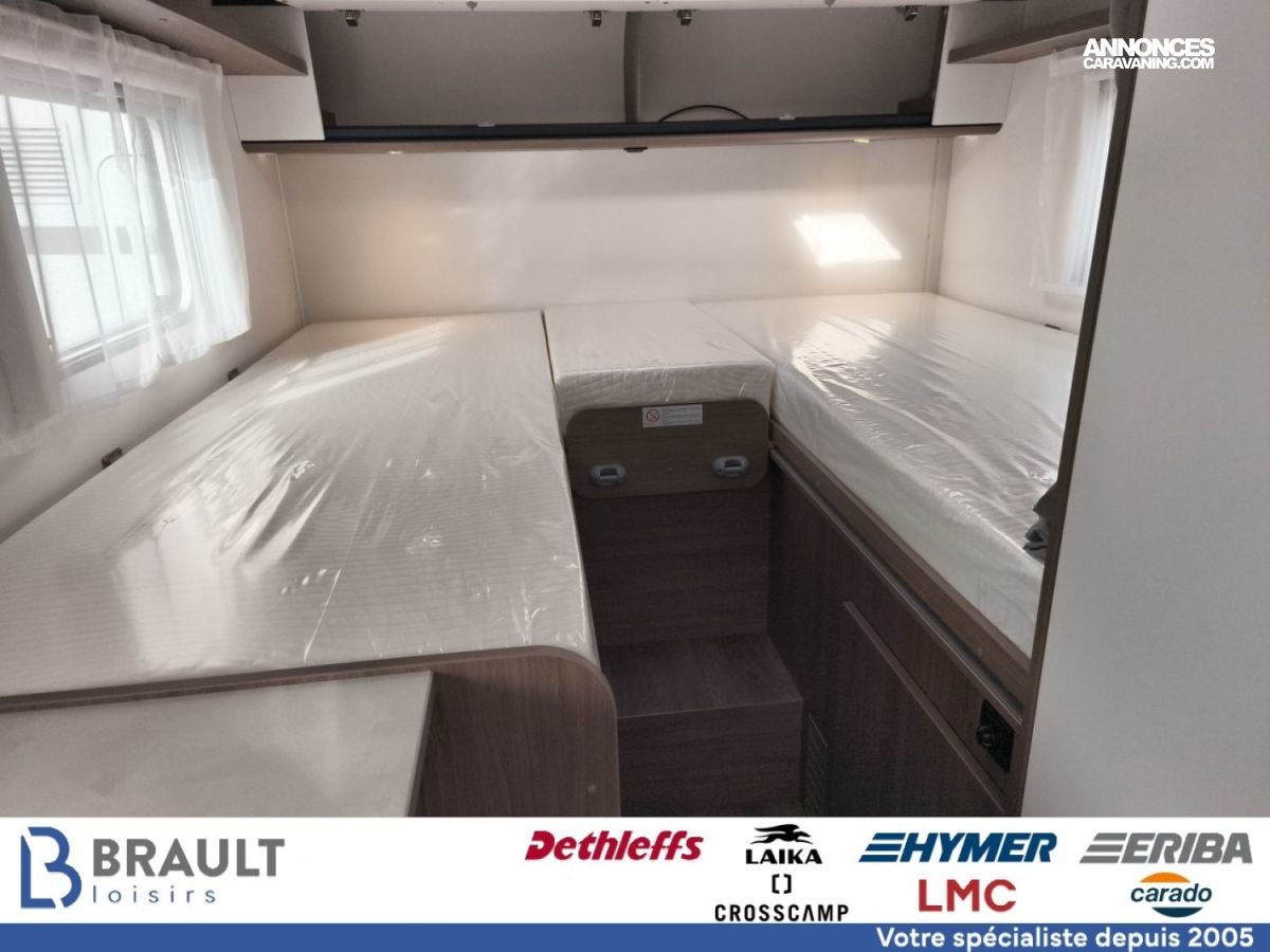 Pack Confort | Couleur extérieure gris Artense métallisé, Stores plissés de cabine, Toit panoramique de cabine, Coloris spécifique des portes des meubles de pavillon en blanc Cosy, Sérigraphe Pro +, Store extérieur 4 m, Réservoir eaux usées isolé, deuxième trappe extérieur
