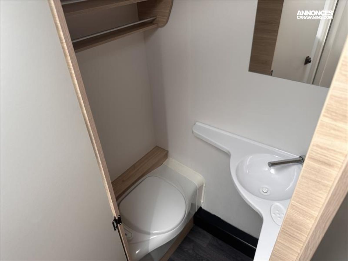 STORE COMBI OCCULTANT + MOUSTIQUAIRE, REFRIGERATEUR A COMPRESSION 70L, ROUE JOCKEY, ECLAIRAGE INTERIEUR LED, MOUSTIQUAIRE, PORTILLON EXTERIEUR LATERAL, SPOTS DE LECTURE LIT PARENTS