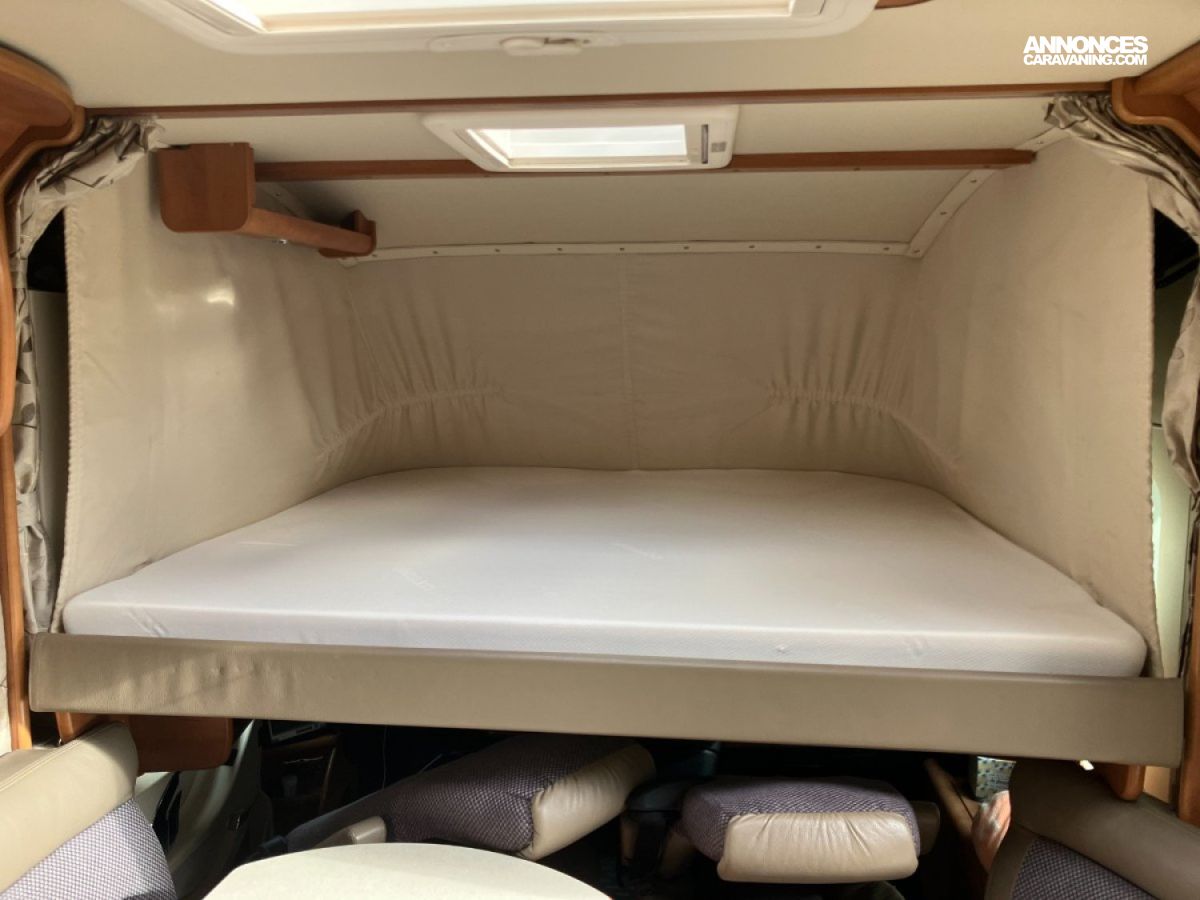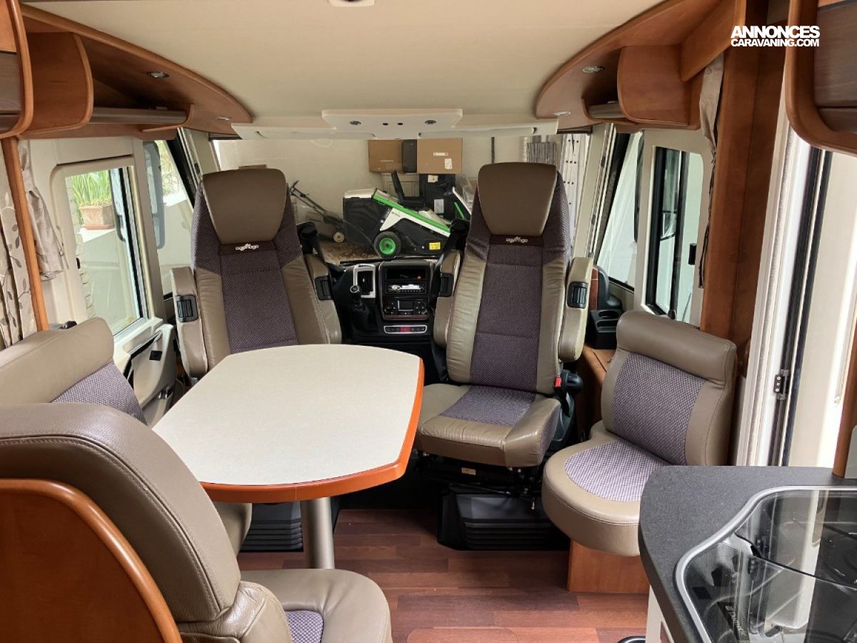 Equipement: Stores et moustiquaires sur tous les ouvrants, vitre électrique et rétroviseurs chauffants, régulateur de vitesse, feux antibrouillard, sièges AV pivotants, intérieur cuir et tissus Macchiato en très bon état, store extérieur THULE, moustiquaire porte de cellule, TV avec antenne omnidirectionnelle TNT, combiné TRUMA, grand frigo avec freezer séparé (160 l), cabinet de toilette avec douche (110 l eau propre, 90 l eaux usées) , nombreux rangements (y compris dans le double plancher), attelage remorque SAWIKO/ALKO, immense soute avec deux grandes portes d'accès, surclassement soute avec revêtement en feutre et filets de rangement, jantes aluminium 16 pouces (garde au sol augmentée), deux batterie cellule, vérins de stabilisation AR mécaniques, TRUMA Duo Control et filtres à gaz, lanterneau Turbovent coin cuisine, entretien régulier (factures)