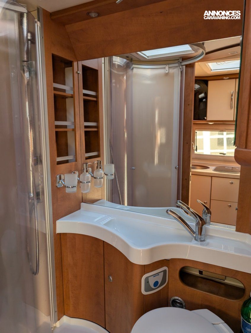 Équipement complet : Caméra de recul, climatisation (Porteur), GPS, autoradio, télévision avec parabole automatique, pile EZA, panneau solaire (grande autonomie électrique), GPL (Gaslow), alarme, auvent, stores occultants + moustiquaires, marche pied électrique, isolation thermique et phonique de qualité, double plancher