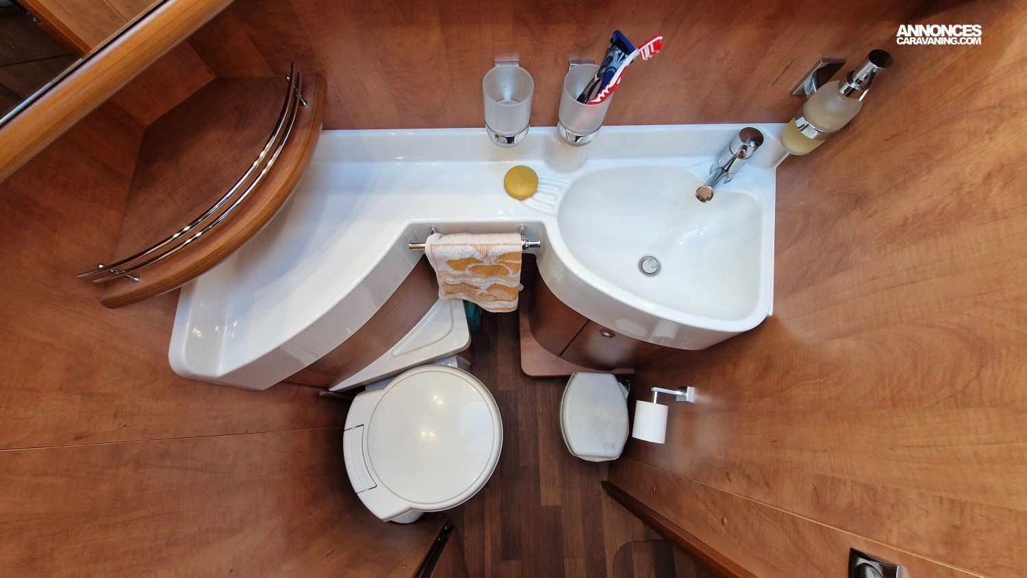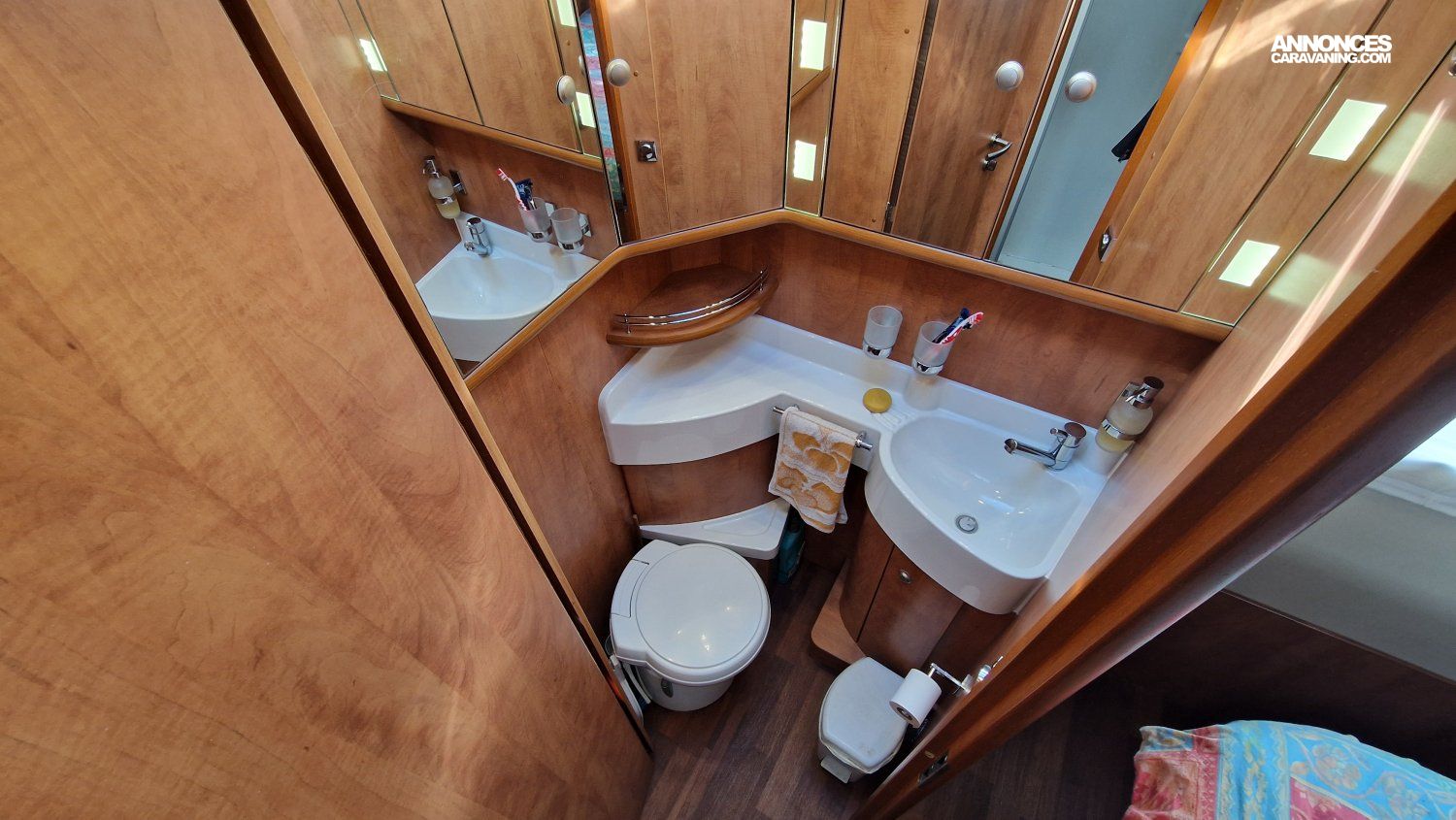 Une implantation idéale pour 2 ou 4 personnes : lit permanent central et grand lit de pavillon, cuisine toute équipée, salon spacieux et lumineux, cabine de douche et cabinet de toilette indépendants.