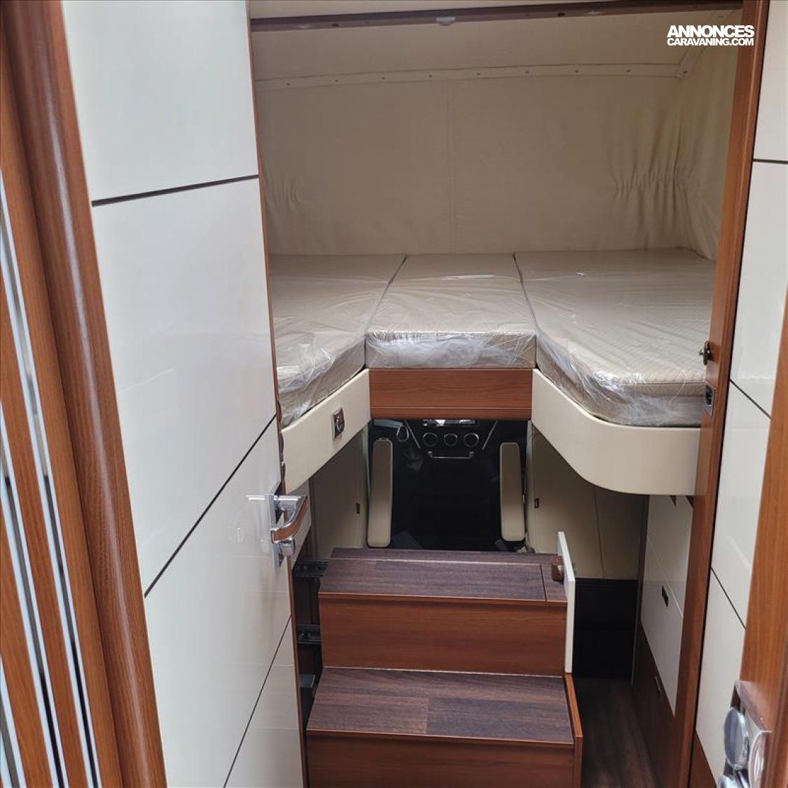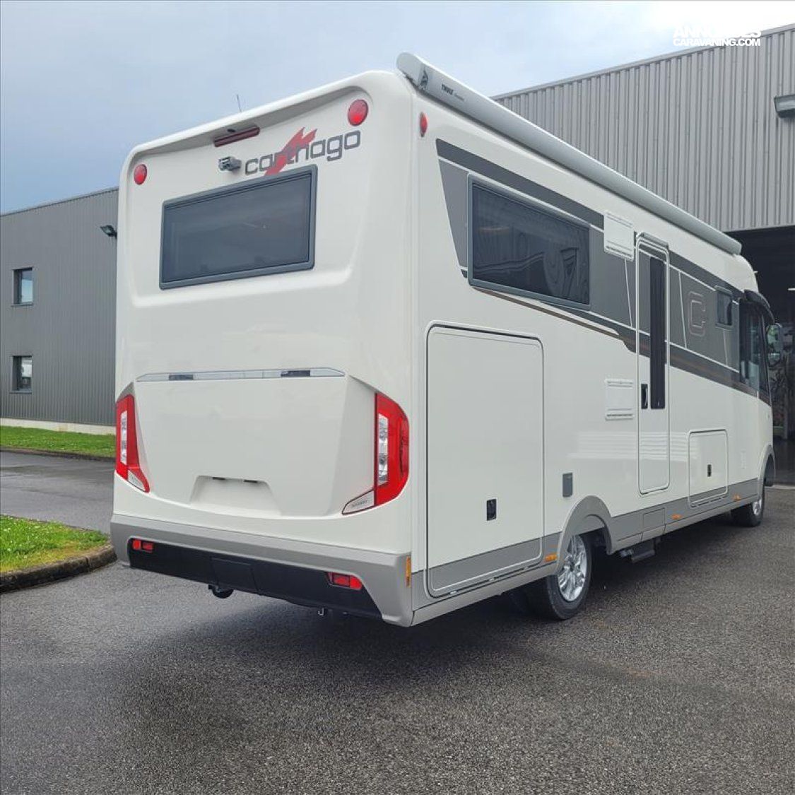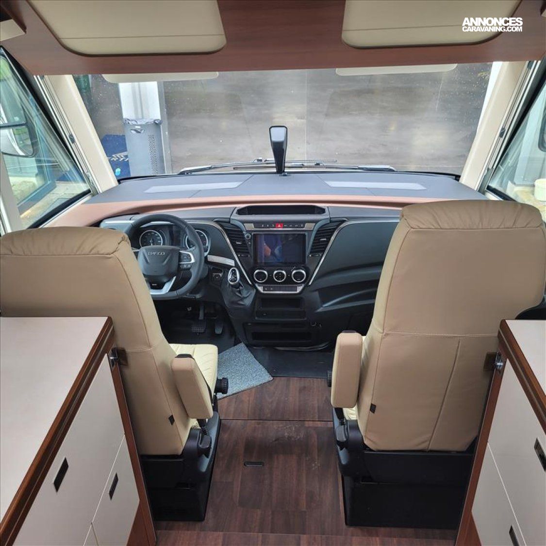 Plissé occultant au niveau des vitres latérales, Porte de la cabine avec double verouillage de sécurité, Phares avant full LED Carthago avec feux de jour à LED, Plan de travail au décor "Savannah" et rebord en Corian, Plan de travail rétroéclairé avec une bande lumineuse à LED, Plissé de pare-brise à structure alvéolaire isolante, Soute hauteur utile jusqu'à 57 cm, Trois grandes baies panoramiques au niveau du salon en U, Sèges confort Aguti "Roadliner" côté conducteur/passager, EPS/ABS/anti-démarrage électronique/ASR/Hillholder, Très grand pare-brise panoramique prolongé vers le bas, Essieu avanr à roues indép. et suspension barres de torsion, Feu antibrouillard, Grand frigo avec porte s'ouvrant dans les deux sens, Grand rangement à travers central, Prise 12V en cabine, garage scooter, Chauffage à l'eau chaude Alde avec booster de chaleur en cab, Châssis surélevé avec roues jumelées sur essieu arrière, Accès depuis l'ext. via plusieurs grandes portes de soute, AdBlue 20L, Essieu arrère rigide à suspension parabolique, Jantes en alu de 16 pouces, Lanterneau panoramique Heki III au-dessus du salon en U, Lève-vitre à commande électirque, Capot design "liner", Écran d'affichage d'assistance (TFT Cluster central), Prise 230V niveau du salon, entrée, cuisne,SDB, garage scoot, Prise USB en cabine, salon, en chambre, Préparation de l'attelage, Rangement à travers chauffé et éclairé, Roue de réserve avec support sous le plancher du garage, Rouleaux de charges lourdes à l'arrière, Réchaud 3 flammes "Profi Gourmet", Régulateur de vitesse, Réservoir à carburant de 90L