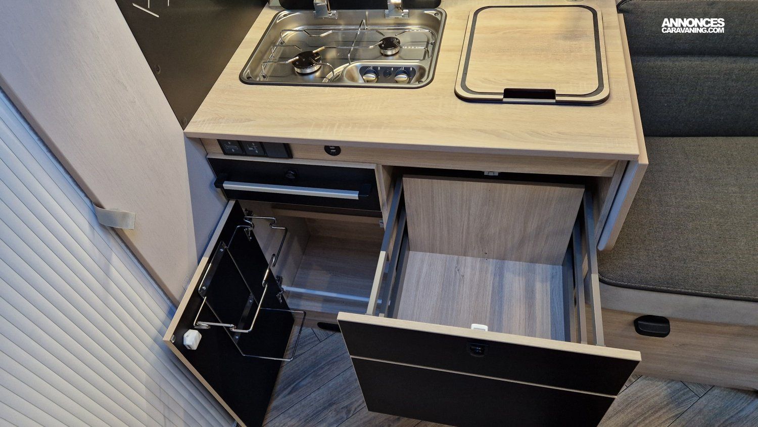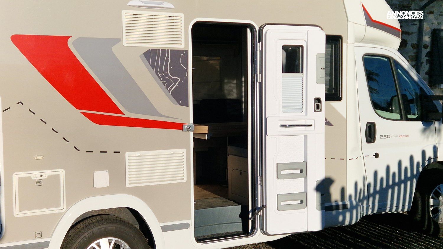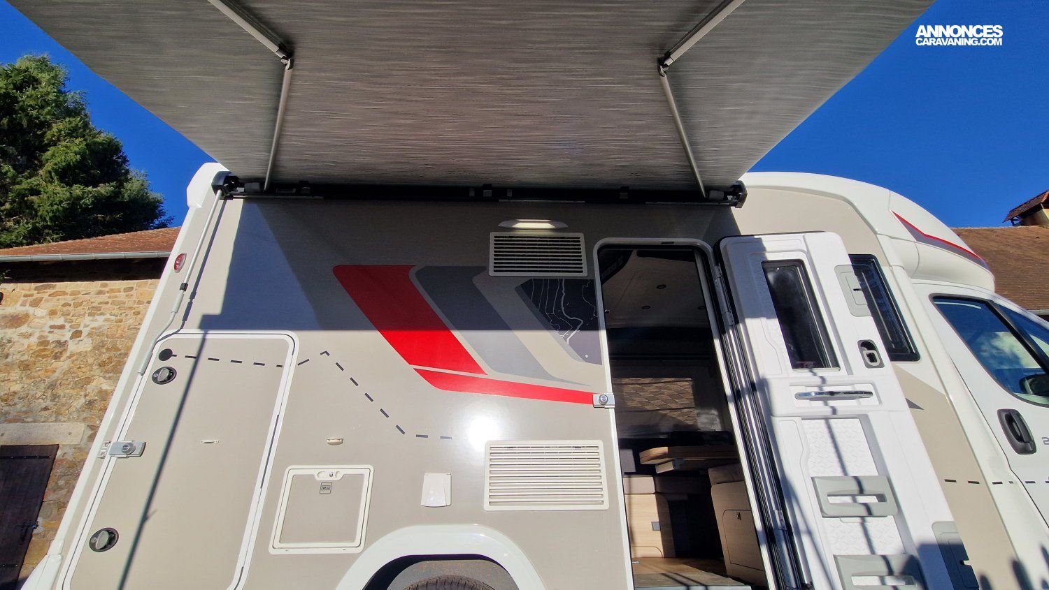 CHAUFFAGE CARBURANT, STORE EXTERIEUR 4M, GAZINIERE 2 FEUX, TIROIRS FERMETURE RALENTIE, ECLAIRAGE LED, MOUSTIQUAIRE DE PORTE CELLULE, PORTE VELO, REFRIGERATEUR TRI MIX, STORES PLISSES DE CABINE, SALON FACE A FACE, LANTERNEAU PANORAMIQUE, MARCHEPIED INTÉGRÉ, TABLE TELESCOPIQUE ELECTRIQUE, CHAUFFE-EAU GAZ
