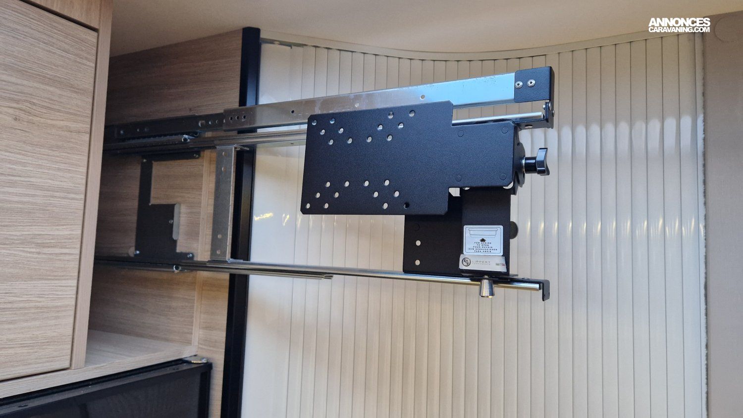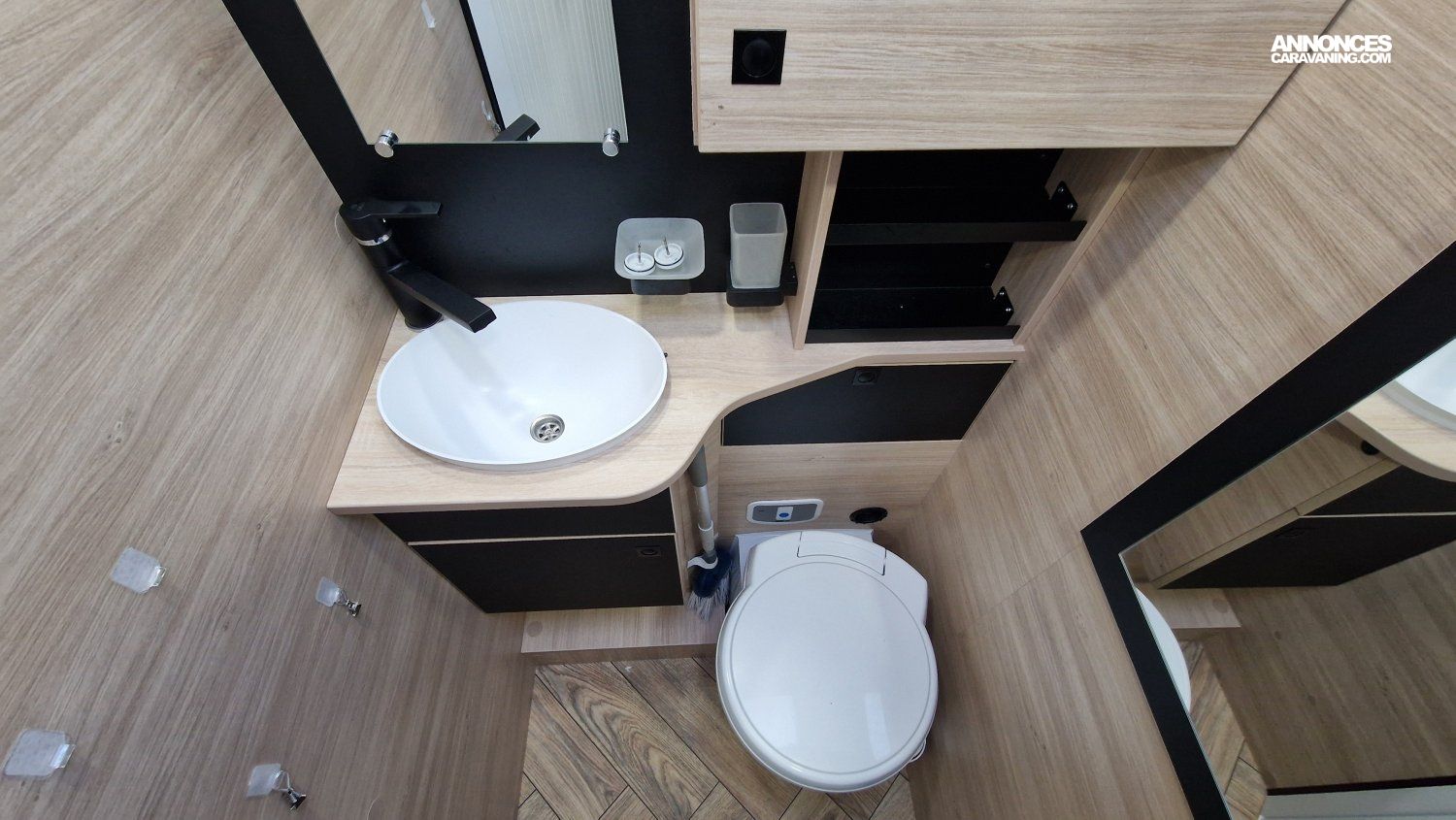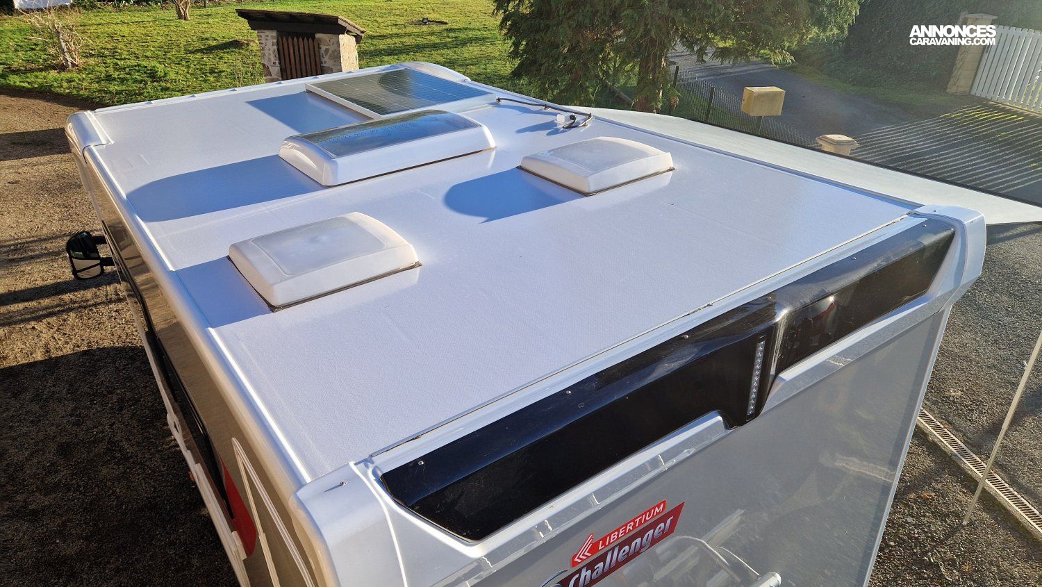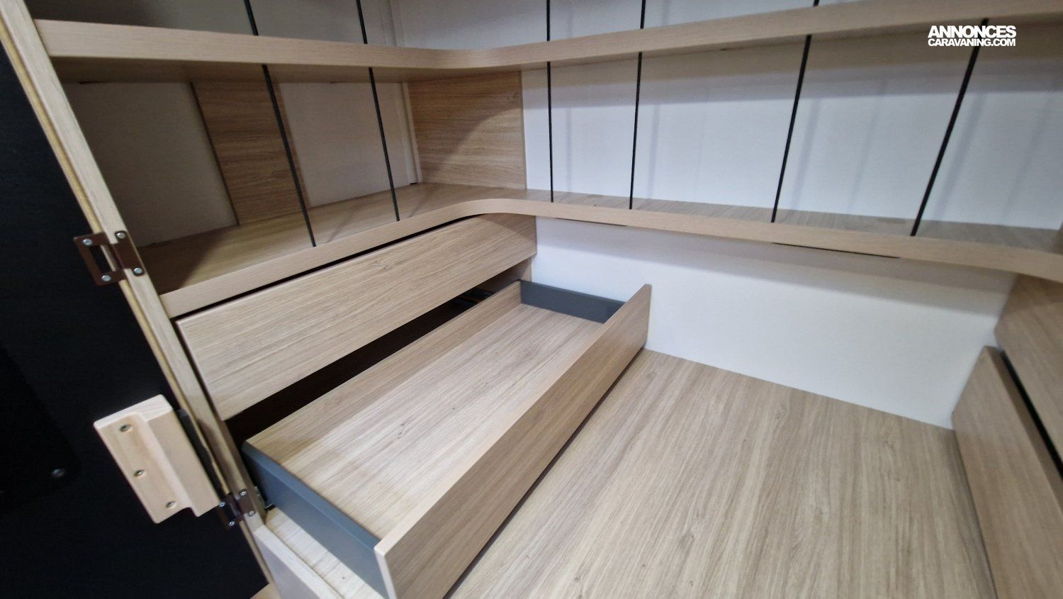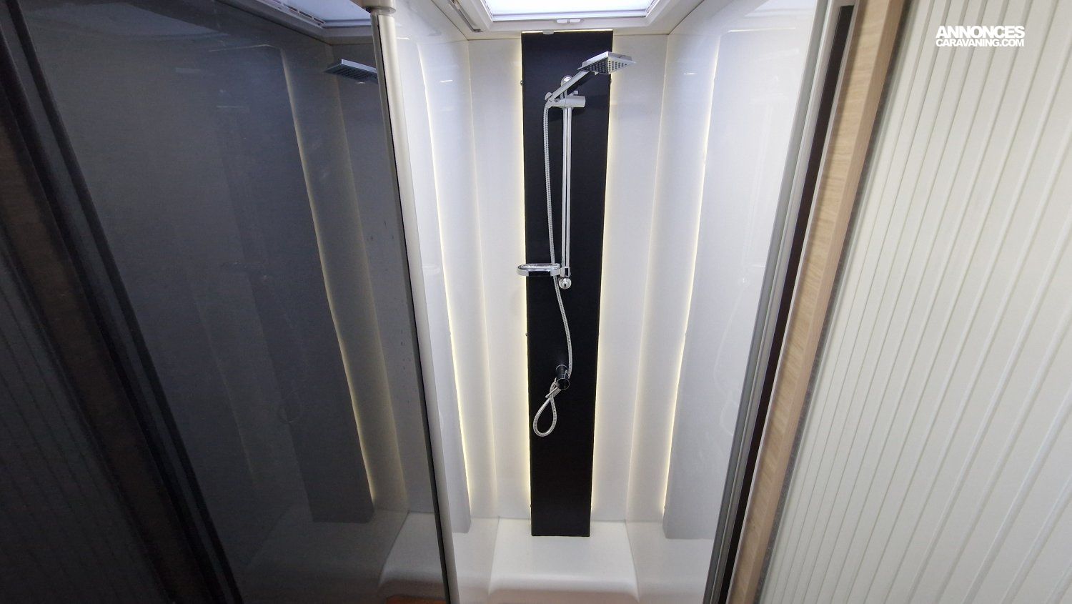 Une implantation idéale pour un couple pour voyager tout confort en toutes saisons : un lit de plafond électrique 2 positions et un lit d'appoint convertible, une cuisine bien équipée avec un grand réfrigérateur / congélateur trimix, un maxi salon convivial en face à face et une salle d'eau indépendante traversante donnant accès à un grand Dressing très logeable.