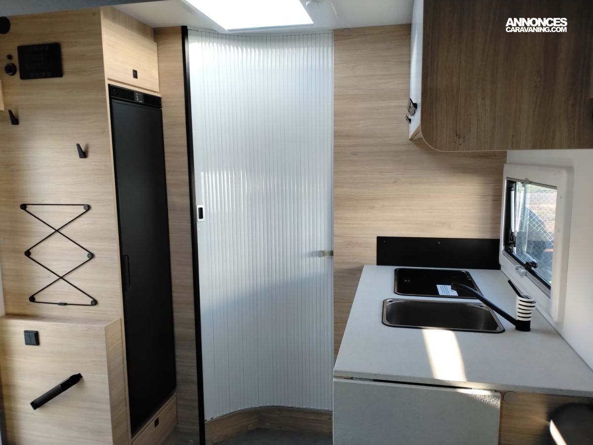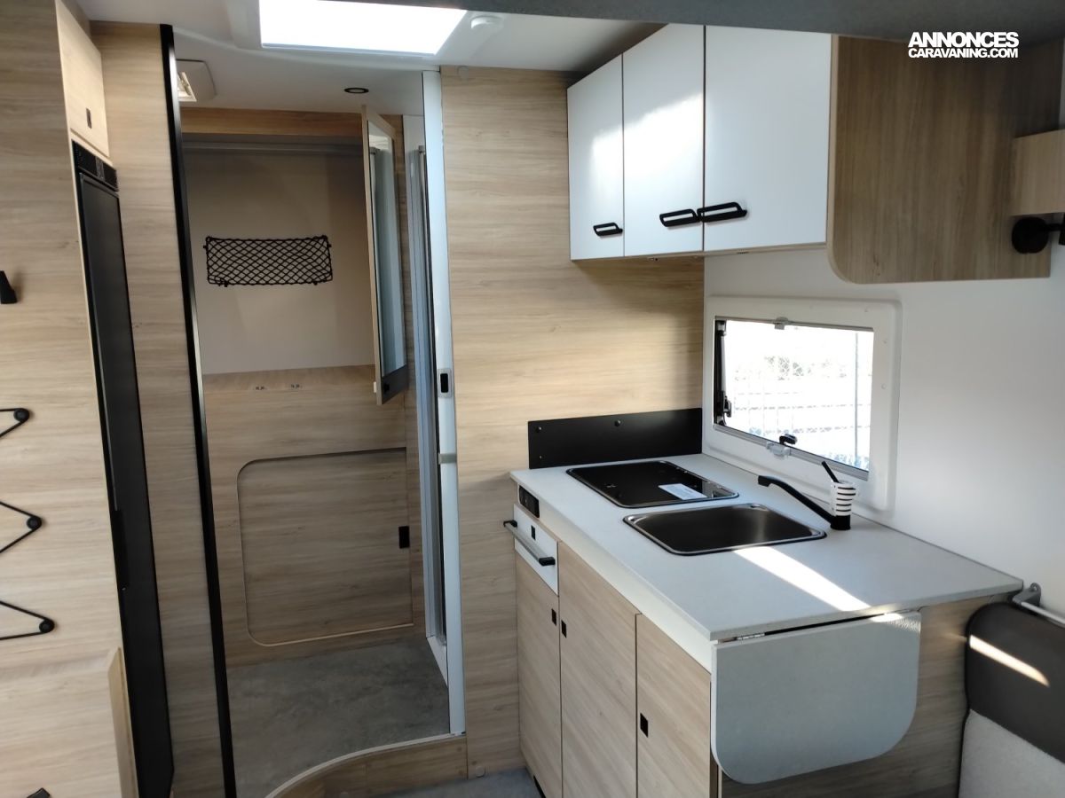 Lanterneau panoramique (ou double lanterneau), Régulateur/limiteur de vitesses, Chauffage sur carburant utilisable en roulant, Pneus 4 saisons, Précâblage caméra de recul, Start & Stop, ESP, Pré-disposition panneau solaire, Traction +, Fixations Isofix, Porte cellule XL, Pare chocs avant peint, Feux anti-brouillard, Isolation marche d'entrée, Fix and Go, Charnières placards amorties, Eclairage d'auvent, Pré-équipement TV, Fenêtres double vitrage avec combiné stores moustiquaire, Hill descent control, Rétroviseurs électriques dégivrants, Penderie, Rideaux de séparation cabine/cellule, Double airbag, Prise USB/UBC-C, Climatisation manuelle cabine