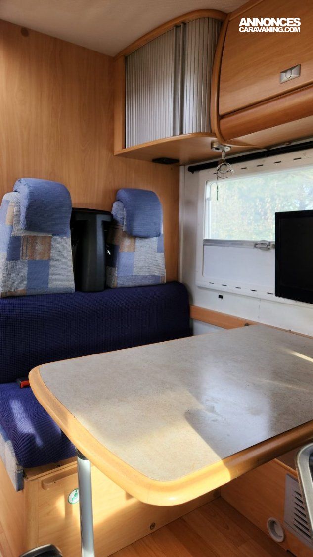 Toutes les installations et options ont été installées par professionnel en concession. Tous les entretiens mécaniques ont été réalisés en garage. Frigo remis à neuf (carte électronique et piezzo neufs), toutes les fenêtres ont été nettoyées et les systèmes de moustiquaire et occultants ont été re-graissés et joints d'étanchéité de moustiquaire neufs. Par mesure d'hygiène, les joints de salle de bain ont tous été refaits. Ce camping-car est en bon état pour son âge (21 ans) , nous nous en séparons car nous avons acheté un modèle plus recent.