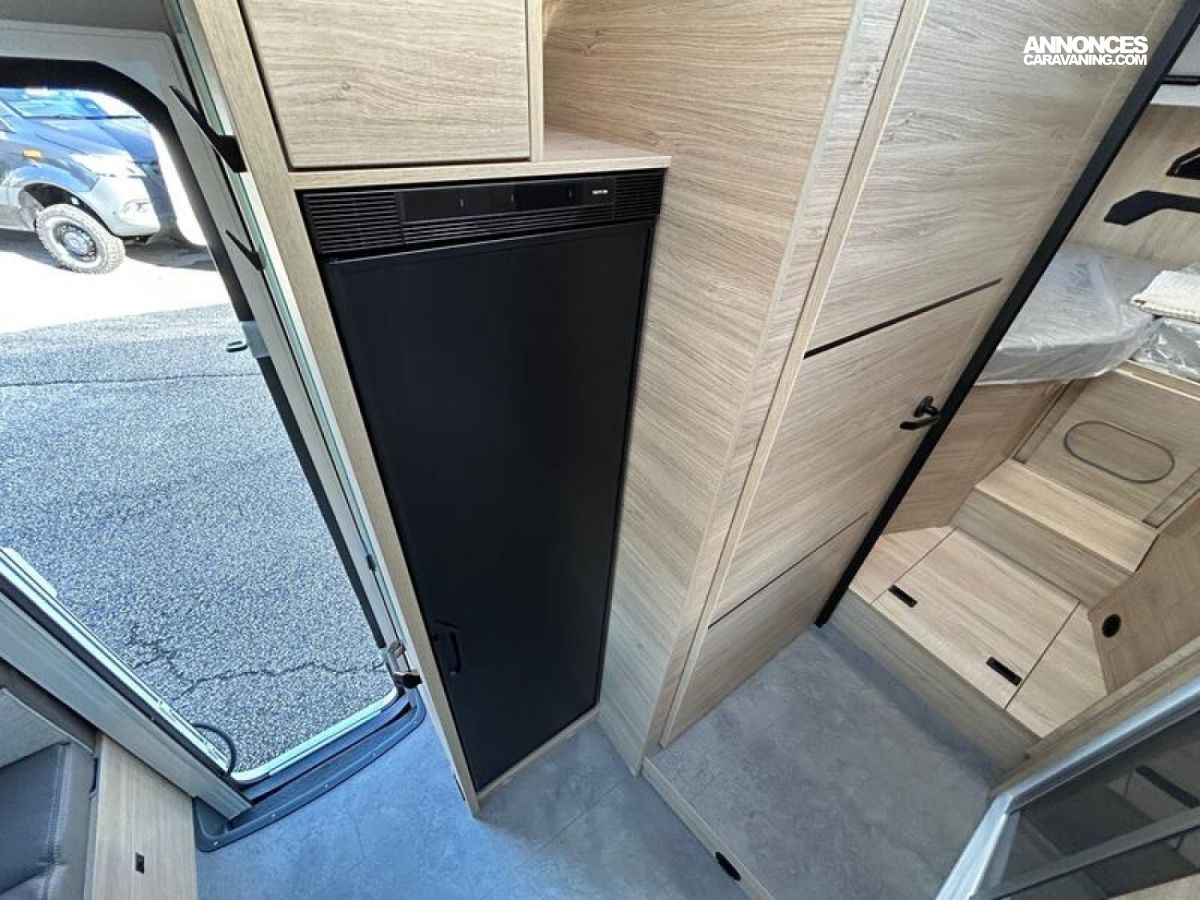 ultimate edition Châssis blanc Climatisation manuelle de cabine Double airbag Fix and go Sièges de cabine pivotants réglables en hauteur avec double accoudoir Housses de sièges cabine assorties à l’ambiance cellule Rétroviseurs électriques dégivrants Régulateur / limiteur de vitesse ESP Traction + Hill descent control Eco pack FIAT : Stop&Start, alternateur intelligent, pompe à carburant à gestion électronique Isolation marche d'entrée Toit panoramique cabine ouvrant Lanterneau panoramique (ou double lanterneau) + Rideaux de séparation cabine/cellule Fenêtres double-vitrage avec combiné stores moustiquaire Voilages Charnières placards amorties Prises USB/USB-C Conception IRP : toit plancher parois polyester Technibox Pare-chocs avant peint Jantes acier avec enjoliveurs 15'' gris Pneus 4 saisons Feux antibrouillard Porte d’entrée avec fermeture centralisée porteur cellule Pré-équipement TV Chauffage sur carburant utilisable en roulant Eclairage d'auvent Penderie Pré-disposition panneau solaire (MPPT ready) Précâblage caméra de recul Fixations Isofix : 0 €