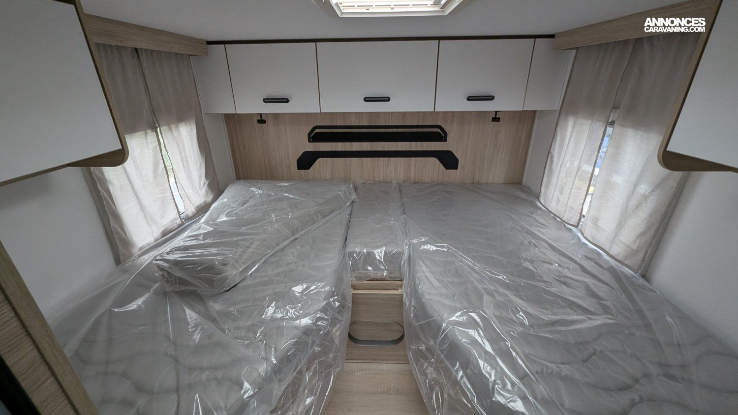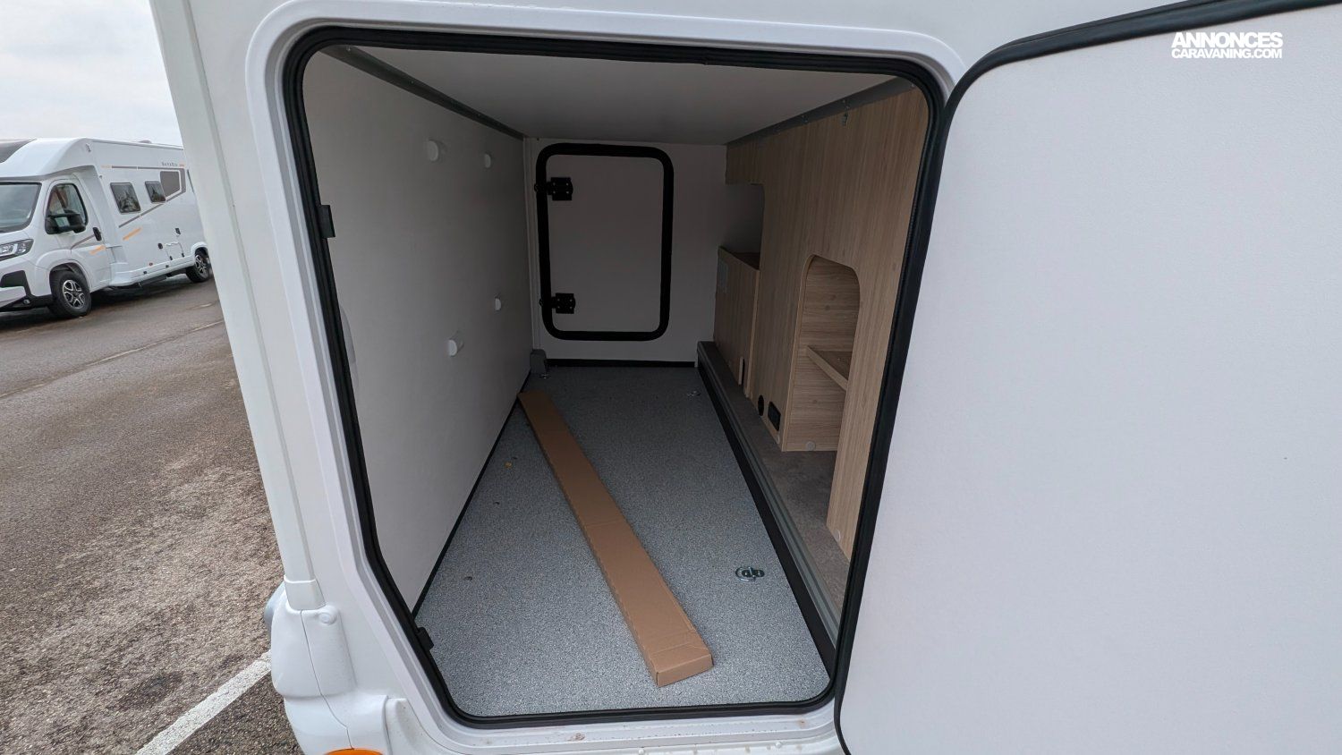 Jantes alliage noires 16", Store intérieur cabine, Store extérieur-auvent, Moustiquaire de porte, Climatisation manuelle de cabine, Extension couchage lits jumeaux, Toit panoramique cabine ouvrant, Pare-chocs avant peint, Porte d'entrée avec fermeture centralisée, Traction +, Chauffage sur carburant utilisable en roulant, Panneau solaire 140W, Régulateur/limiteur de vitesse, Lits jumeaux, Lit de pavillon électrique, Double cloison de séparation, Porte cellule XL avec fenêtre, Prises USB/USB-C