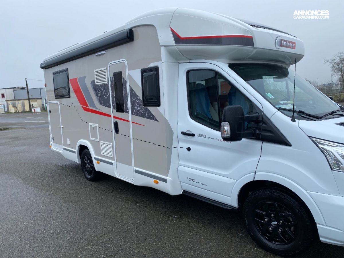 FORD TRANSIT CHALLENGER 328 ULTIMATE GRAPHITE 2,0 L 170 CV BOITE AUTO 6 rapports DE FEVRIER 2024 GARANTIE 02/2026 .contrôle étanchéité ras effectue 02/2025 , véhicule non fumeur et pas d 'animaux . équipe de FIXATIONS sur sièges ISOFIX , d'un lit central XL 160 relevable manivelle sur soute , d'un lit pavillon électrique 140x 1,90 de 2 personnes adultes avec échelle , douche avec caillebotis et wc séparé, grand frigo 141 L + congélateur , chauffage sur carburant utilisable en roulant a commande digitale programmable , porte entrée centralisé , conception IRP ;toit plancher parois polyester ,plancher 64 mm , jantes alu noire 16 pouces , pare choc peint avec anti-brouillard , allumage des feux & essuie glace auto ,miroir entrée rétro éclairé , dressing penderie étagères , plusieurs prises USB dont une dans la chambre ,lanterneau panoramique cabine ouvrant , fenêtres doubles vitrage avec combiné store moustiquaire , régulateur limiteur de vitesse , start & go , éclairage LED au sol , prise extérieur eau avec couchette , prise gaz pour barbecue ou plancha extérieur , tv 22 pouces sur antenne inet Alden sans parabole ,grande soute avec 2 accès , un porte vélos 2 , store taules de 3,50 m , un panneau solaire de 130 wtt , total des options 6996 euros ,kilométrage légèrement evolutif .prix bas avant reprise professionnel fin septembre