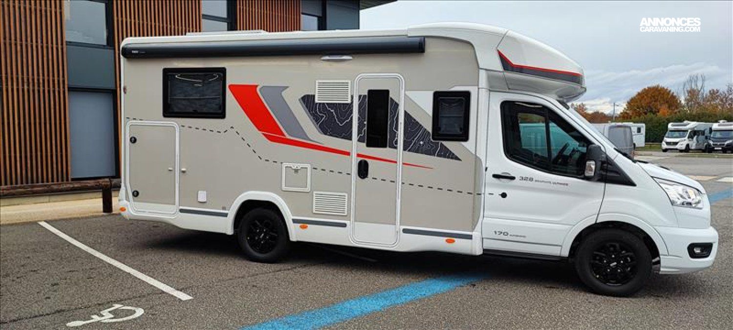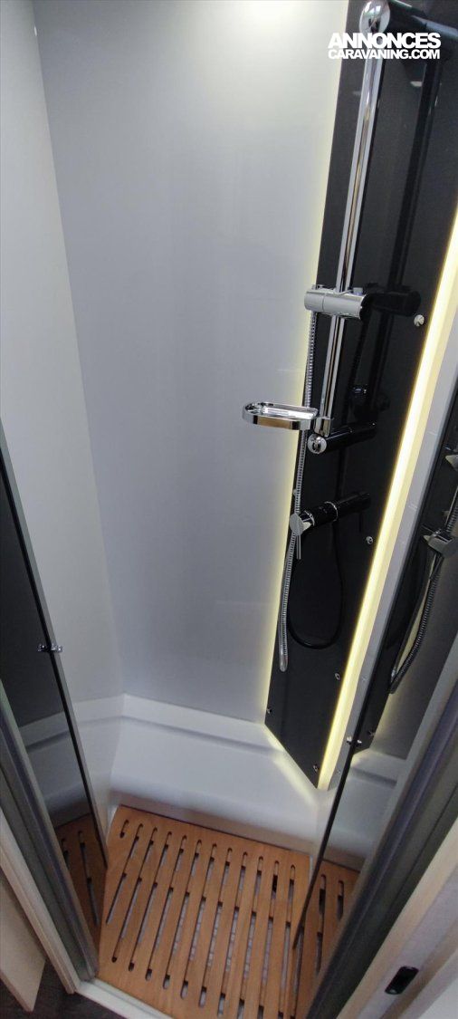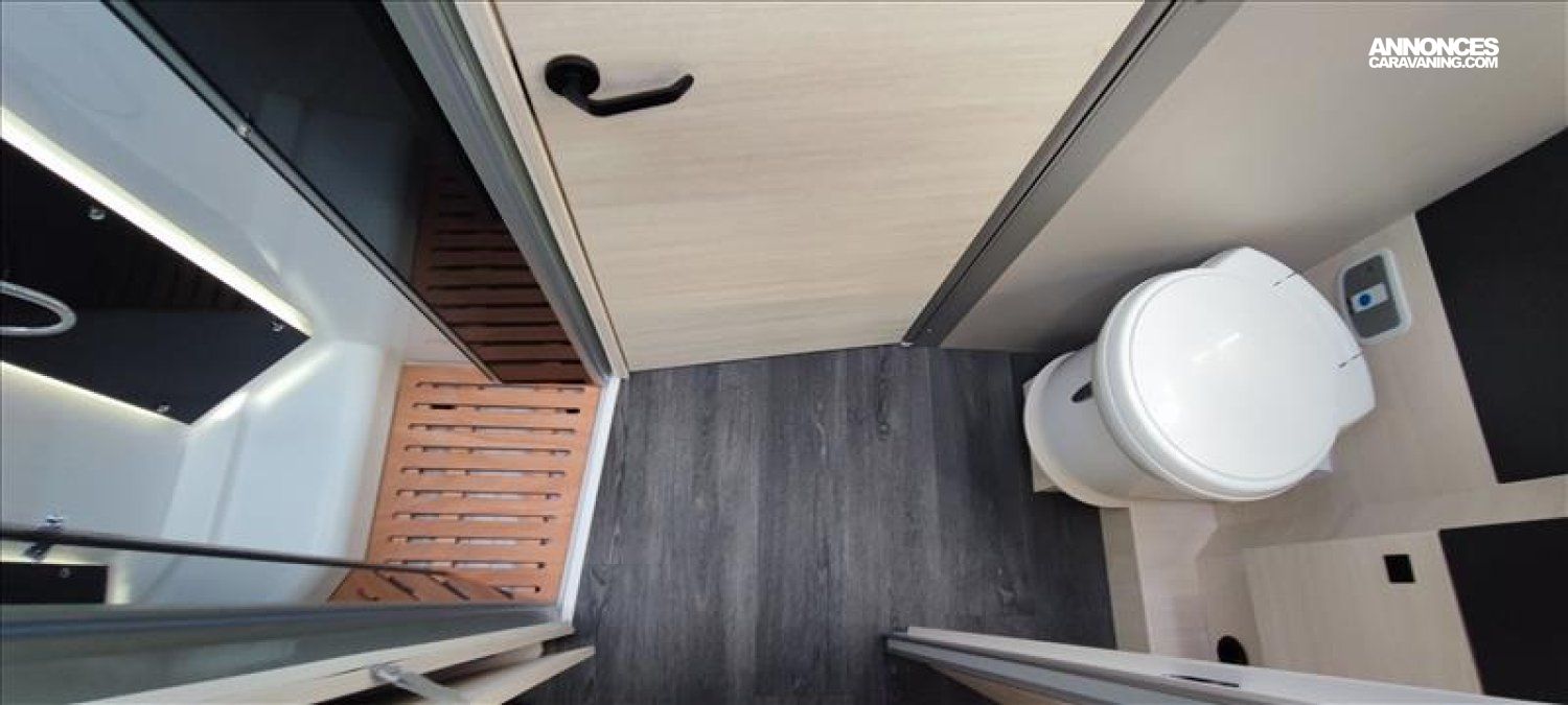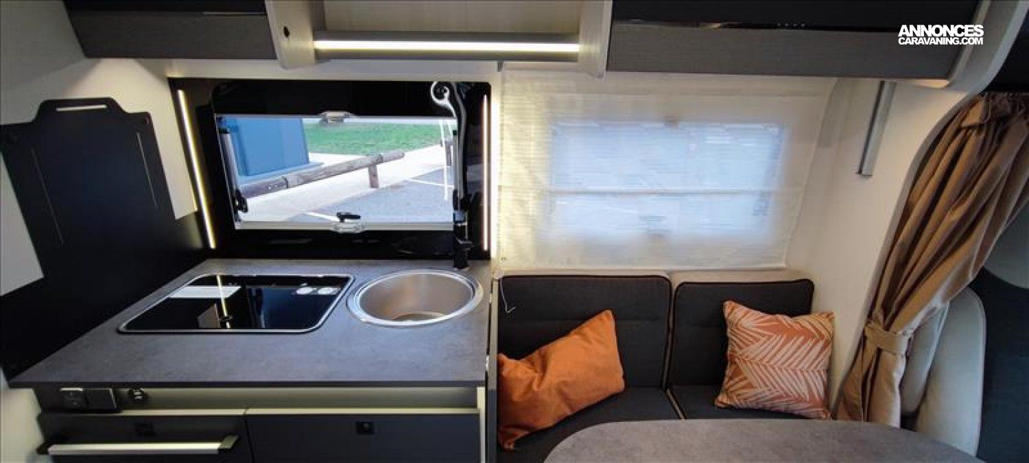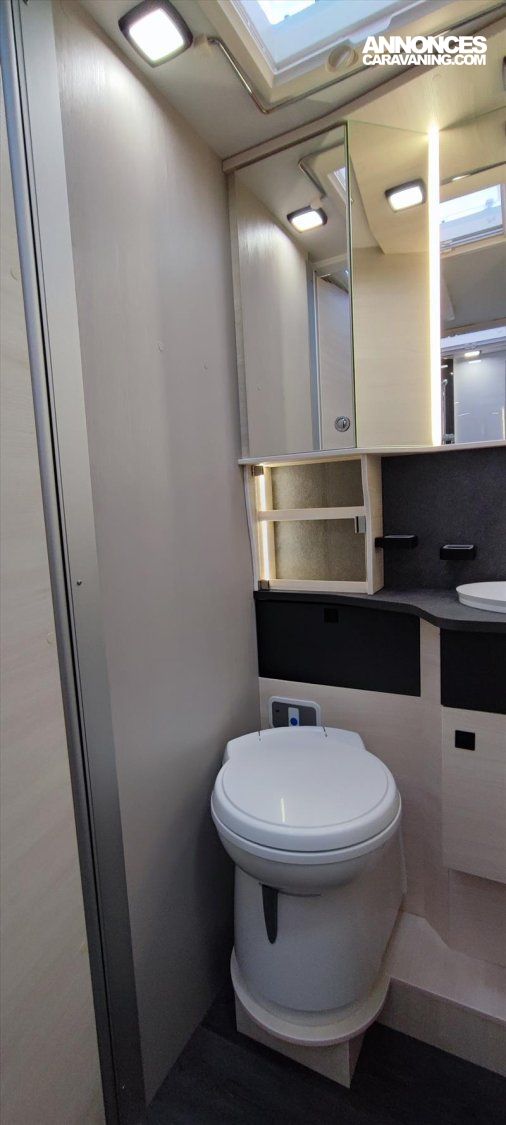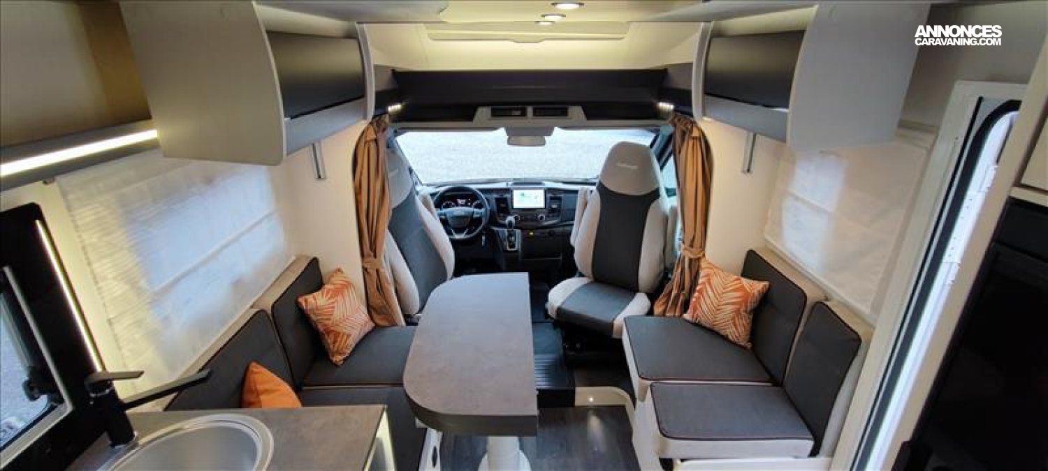 CLIMATISATION CABINE, LIT CENTRAL REGLABLE EN HAUTEUR, DOUCHE SEPAREE, LIT DINETTE, REGULATEUR / LIMITEUR DE VITESSE, LIT PAVILLON ELECTRIQUE, CARROSSERIE 100 % POLYESTER ANTI GRELE
