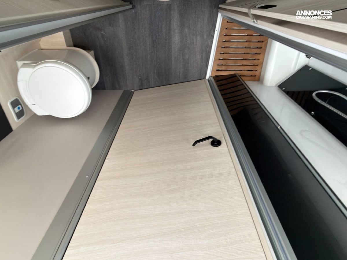 Feux antibrouillards, Panneau solaire, Prise de gaz extérieure, Régulateur / limiteur de vitesse, Store intérieur cabine, Éclairage extérieur porte d'entrée, Rétroviseurs électriques dégivrants, Moustiquaire de porte, Climatisation manuelle de cabine, Double airbag, Douchette extérieure, ESP, Jantes alliage 16’’ noires, kit pose 2ème batterie, Boite automatique 6 rapports, Caillebotis de douche, Chauffage sur carburant utilisable en roulant, Store extérieur