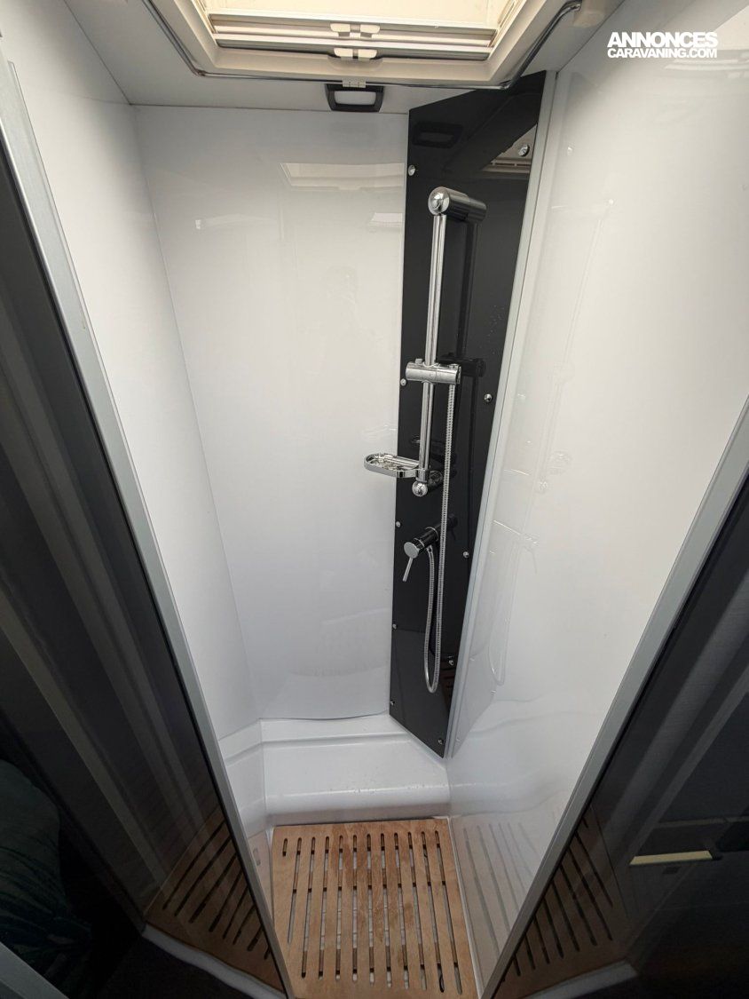REGULATEUR & LIMITATEUR DE VITESSE, CAMERA DE RECUL, TV, 2X BATTERIE CELLULE, GRAND CABINET DE TOILETTE, DOUCHE SEPAREE, AUTORADIO DAB, LIT CENTRAL REGLABLE EN HAUTEUR, LIT PAVILLON, CARROSSERIE ANTI-GRELE, PANNEAU SOLAIRE, CHAUFFAGE WEBASTO