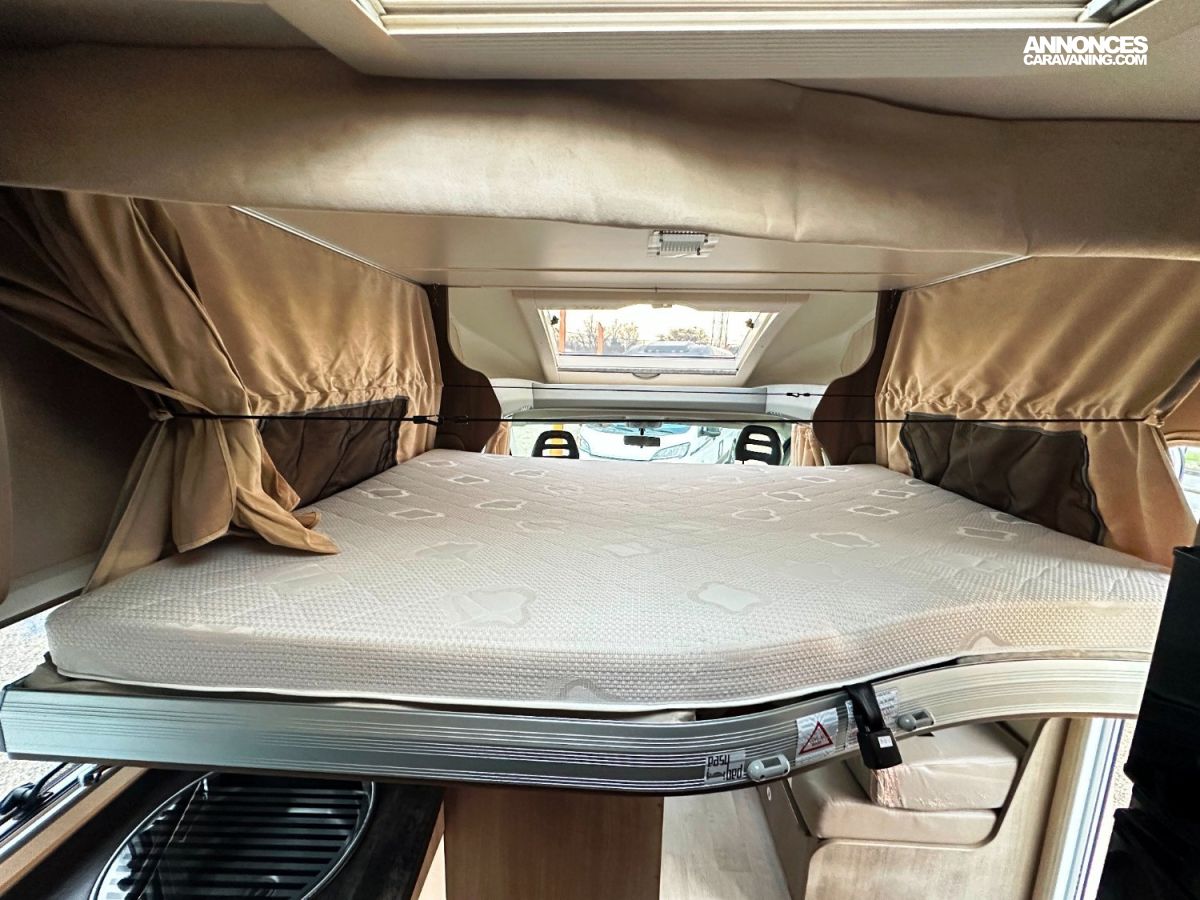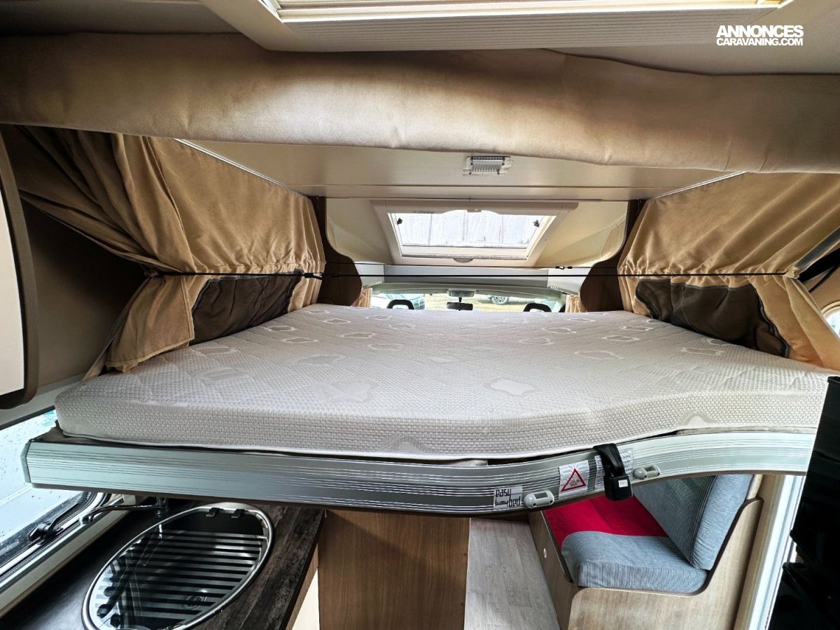 - Espace Nuit : Chambre arrière avec lit central réglable en hauteur, offrant une séparation pour plus d’intimité.