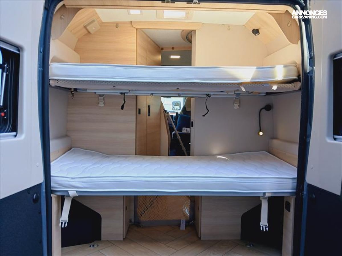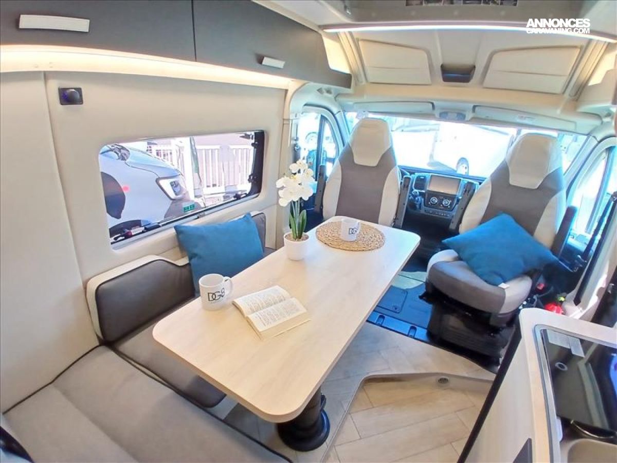 Baies arrières ouvrantes avec enjoliveur de baie, Chauffage sur carburant utilisable en roulant, Climatisation manuelle de cabine, Double airbag, Eco pack FIAT : Stop&Start, alternateur intelligent, ESP - Traction +, Extension table dinette, Fenêtres double-vitrage avec combiné stores moustiquaire, Feux antibrouillard, Fix and go, Gris Campovolo, Hill descent control, Housses de sièges cabine assorties à l’ambiance cellule, Isolation renforcée "VPS", Jantes alliage 16’’ noires, Marchepied électrique, Mobilier Tenerife, Motorisation 140CV, Pare-chocs avant peint, Pneus 4 saisons, Pompe à carburant à gestion électronique, Pré-disposition panneau solaire, Pré-équipement TV, Prises USB/USB-C, Réfrigérateur 84L, Régulateur / limiteur de vitesse, Rétroviseurs électriques dégivrants, Rideaux d’isolation thermique des baies de cabine, Salle d'eau avec fenêtre, Sièges cabine pivotants réglables hauteur, double accoudoirs, VEHICULE NEUF D EXPOSITION