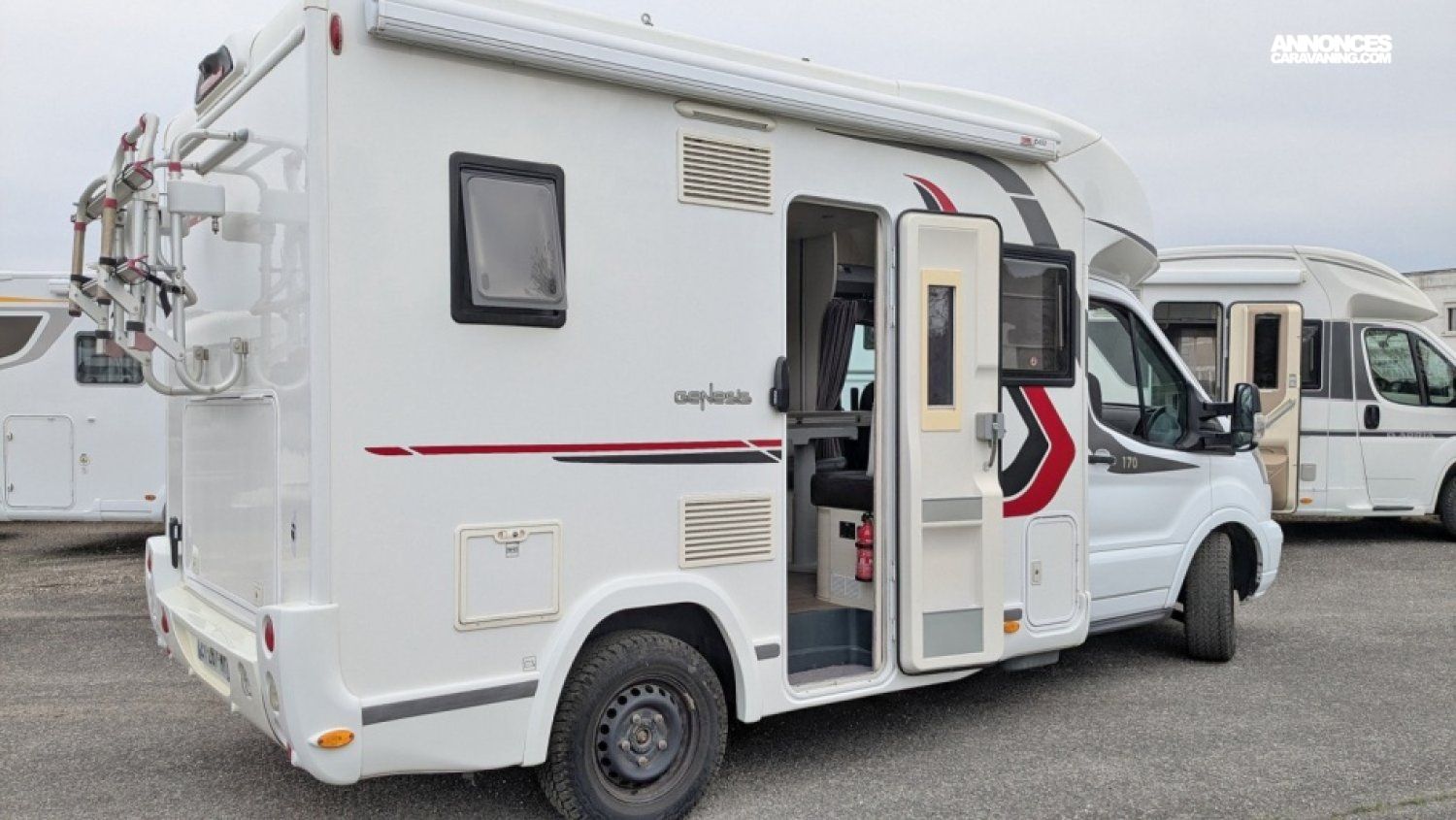 Camping car profilé ultra compact, spacieux et très bien équipé sur Ford 2,0 TDCi 170 cv avec lit principal pavillon de 140 x 190, très grand salon convivial convertible en couchage de deux personnes, salle d'eau/WC transversale avec douche séparée et dressing, cuisine avec frigo/congel 175 litres. Un bel espace à vivre !