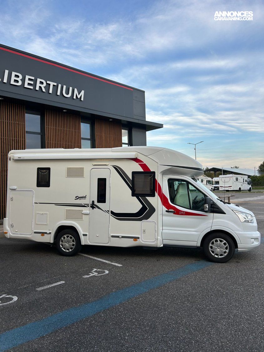 CAMERA DE RECUL, CHAUFFAGE GASOIL, GRANDE SOUTE, PANNEAU SOLAIRE, SKYDOME, STORE EXT, MOTORISATION 170CV, ANTENNE SAT MANUELLE, AUTORADIO FORD AVEC COMMANDES AU VOLANT, PORTE VELO ASCENSIONNEL, REFRI 175L, TV, ROUES 16", SECURITE DE PORTE