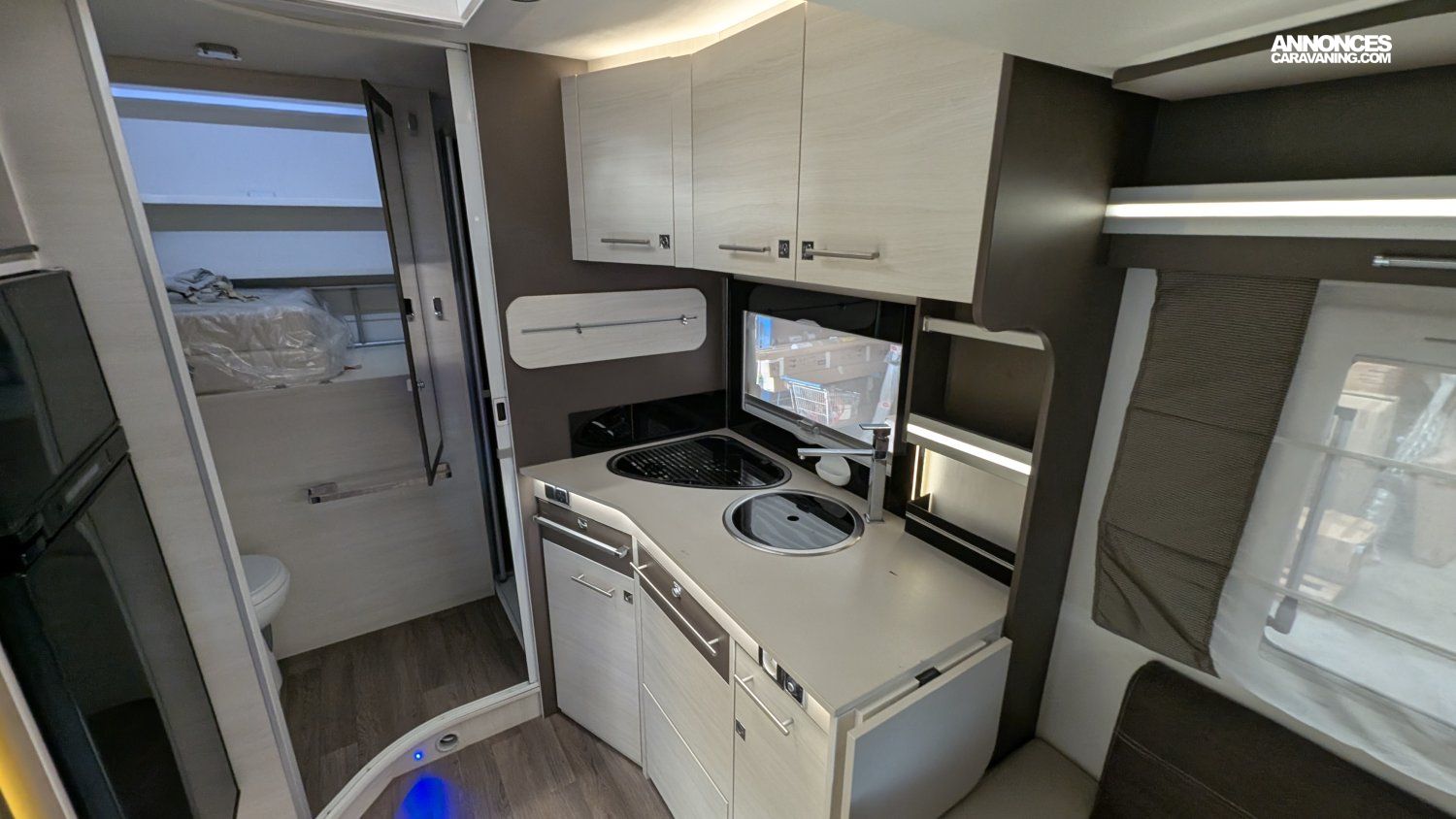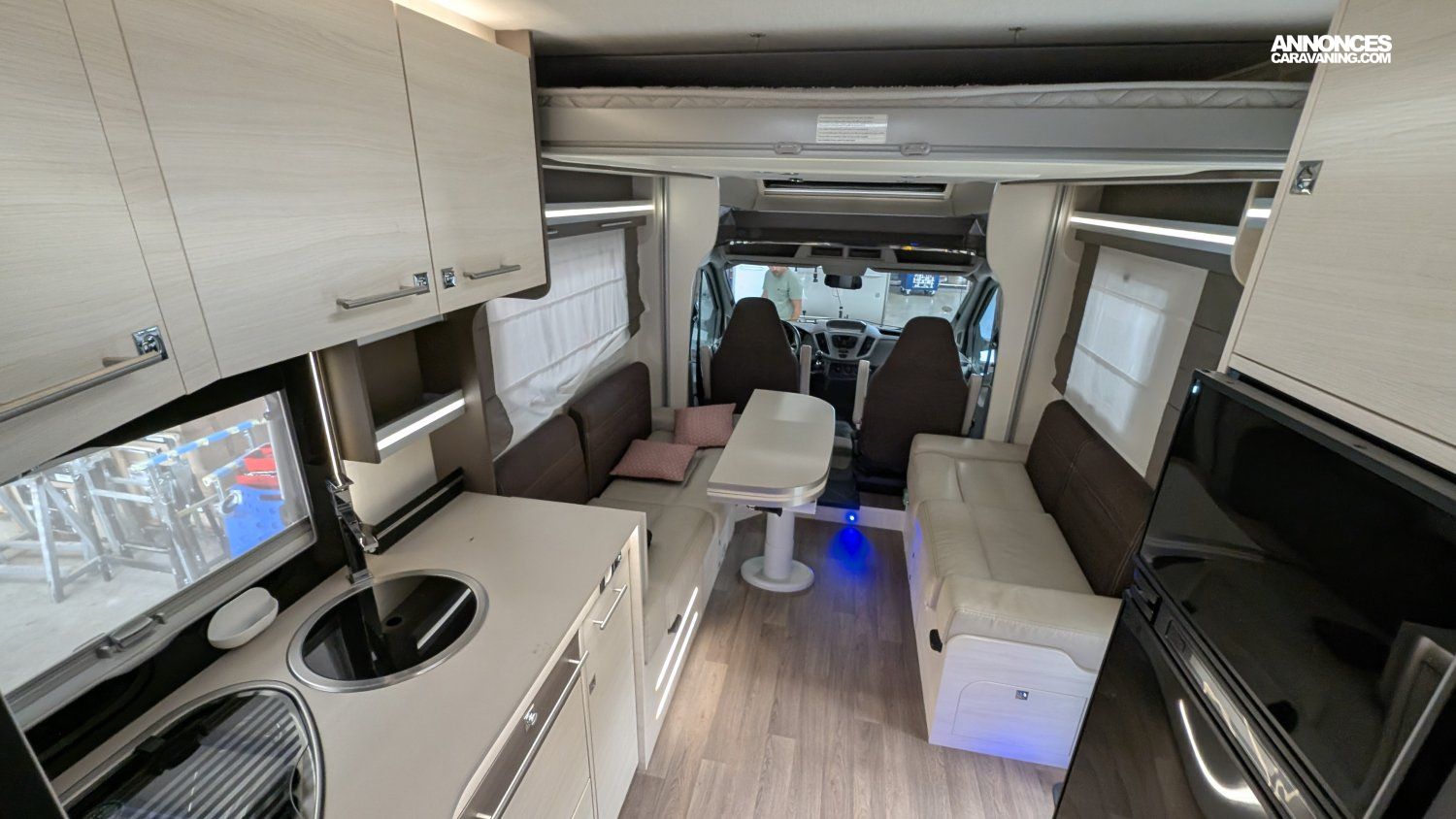 Autoradio Ford, Regulateur de vitesse, Climatisation manuelle de cellule, Grand refrigerateur, Phares antibrouillard, Chauffage utilsable en roulant, Store extérieur, Chauffage sur carburant, Antenne satellite automatique + TV, Stores occulatants en cabine, Panneau solaire, Caméra de recul, Lit de pavillon et table électriques