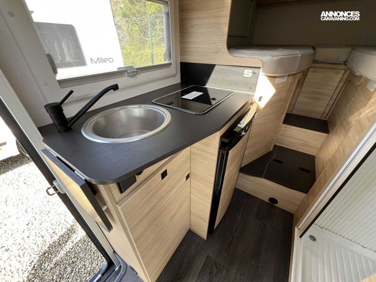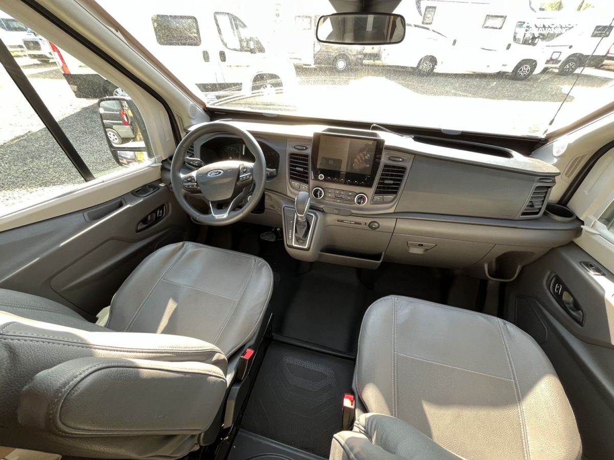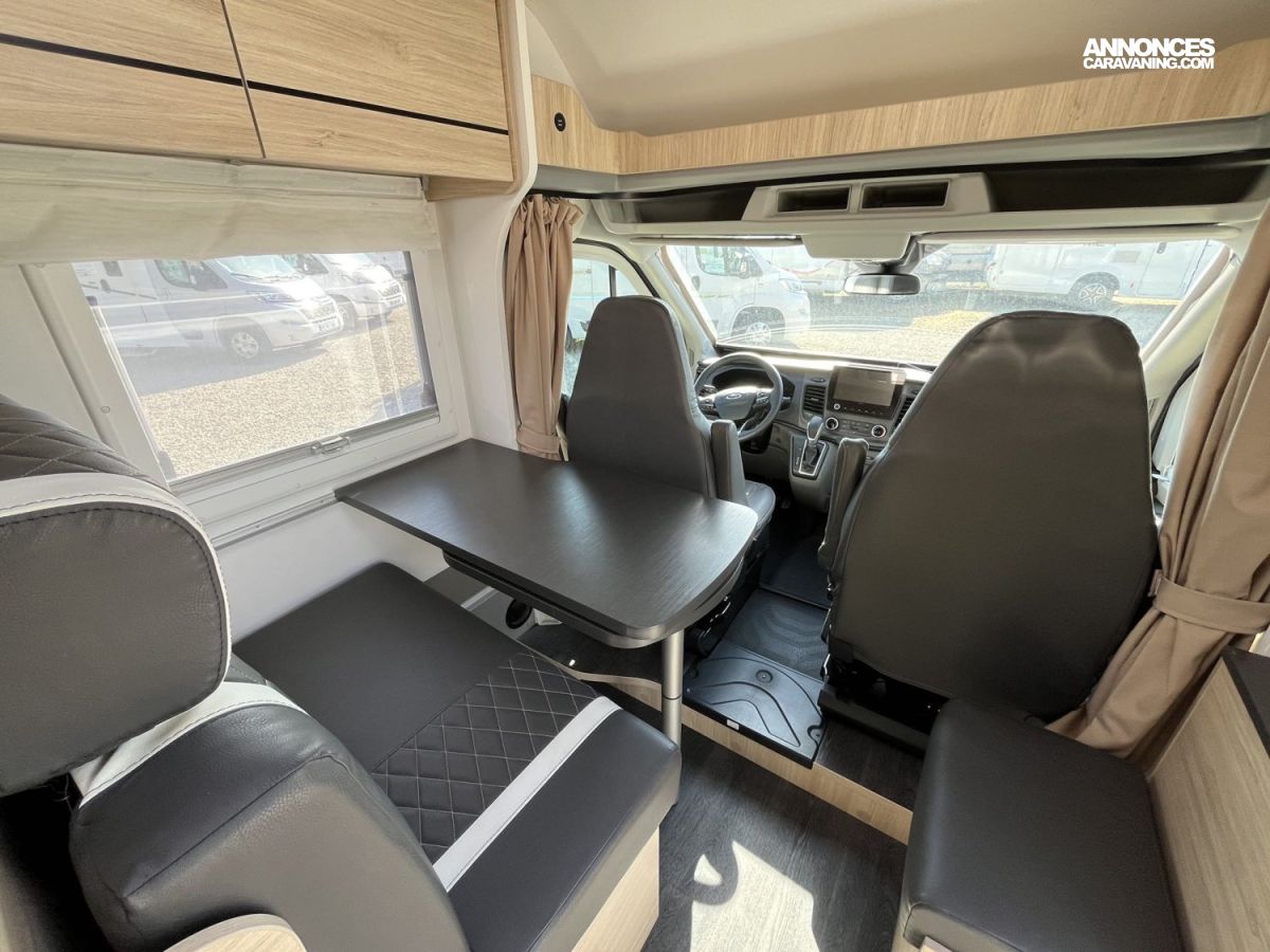Douche modulable, lit jumeaux, Salon avant sièges pivotants, Soute, WC Cassette.