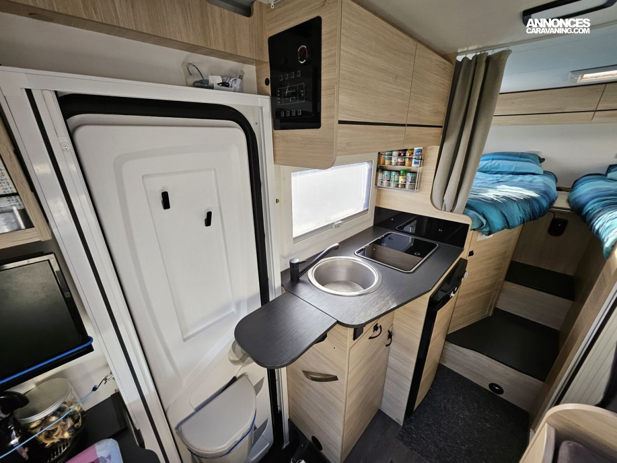 CHAUFFAGE CARBURANT, STORE EXTERIEUR 3.5M, GAZINIERE 2 FEUX, DOUCHE ET WC SEPARES, ECLAIRAGE LED, MOQUETTE CABINE, MOUSTIQUAIRE DE PORTE CELLULE, RALLONGE DE TABLE, REFRIGERATEUR TRI MIX, STORES PLISSES DE CABINE, SALLE D'EAU PIVOTANTE, PORTE VELO ASCENSIONNEL