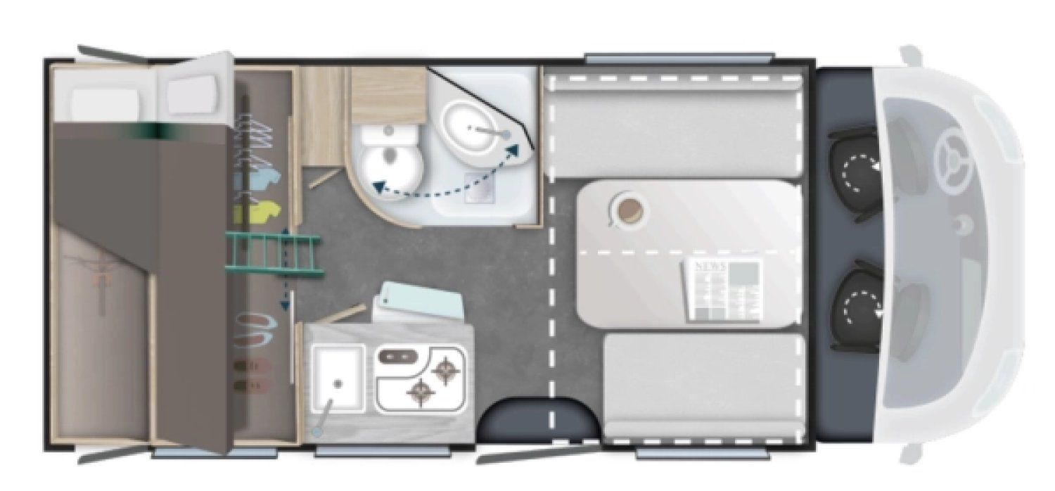 intérieur cabine, complément couchage dinette, compléments couchage lits jumeaux*, kit