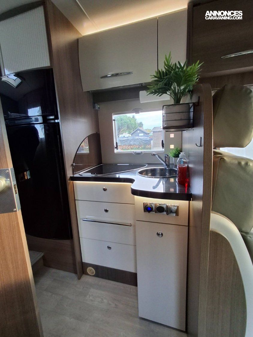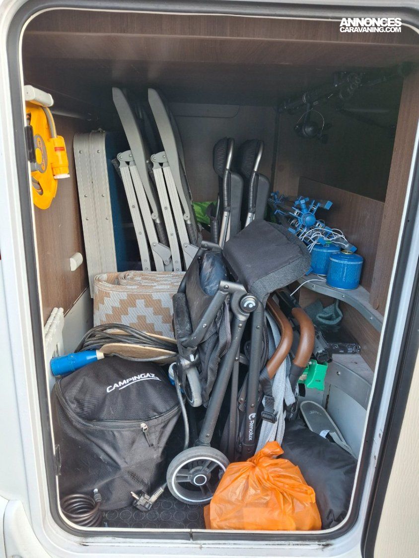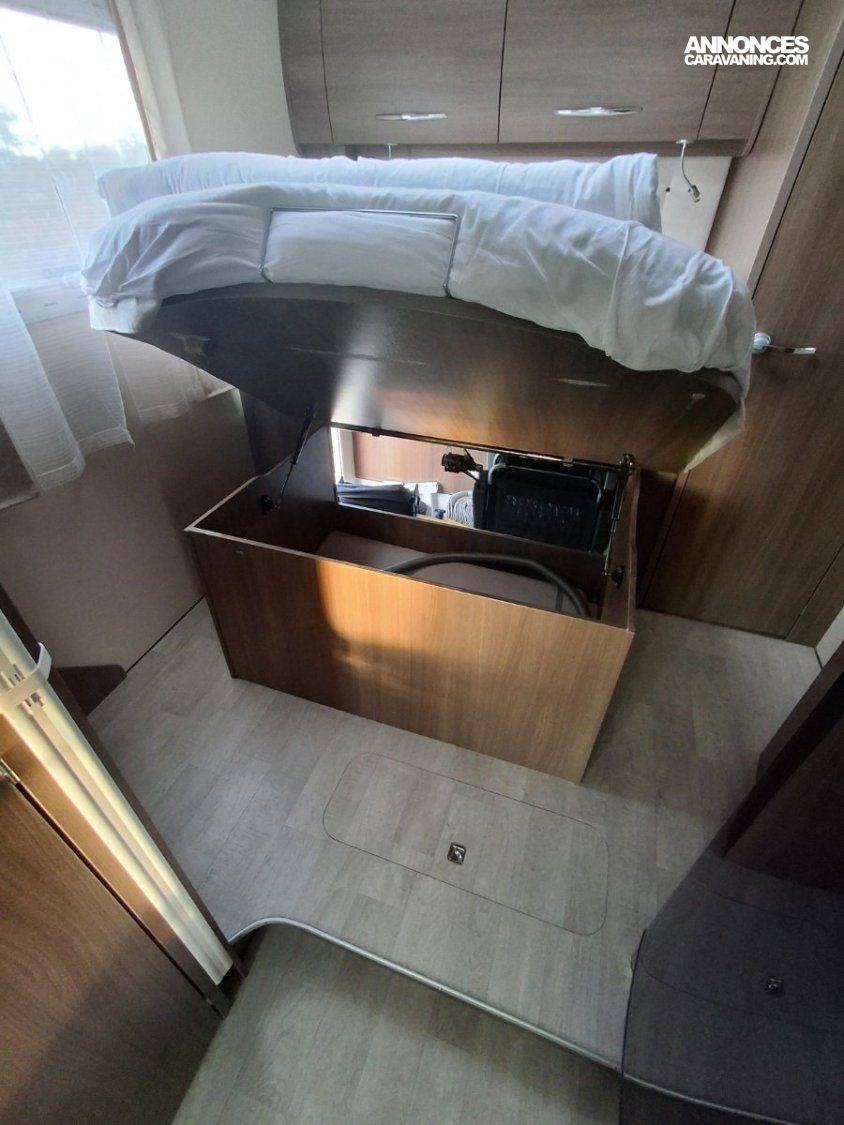 1 Lit cabine au dessus des sièges avant sans gêne pour la table et banquettes.