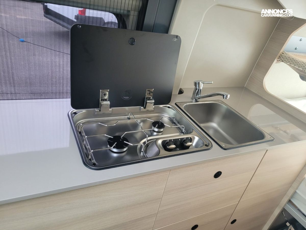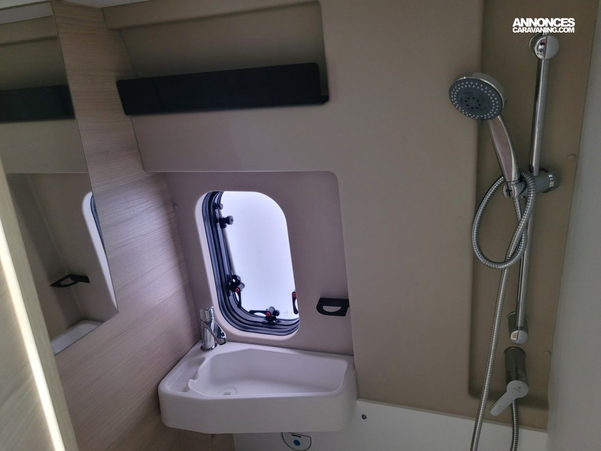 Pré-disposition panneau solaire (MPPT ready), ESP, Baies arrières ouvrantes, Pré-équipement TV, Précâblage caméra de recul, Rideaux d'isolation thermique des baies de cabine, Régulateur / limiteur de vitesses, Rétroviseurs électrqiues dégivrants, Salle d'eau avec fenêtre, Start & Stop, Marche pied électrique, Pneus 4 saisons, Traction +, Prises USB/USB-C, Sièges de cabine pivotants réglables en hauteur, Extension table dinette, Fenêtres double vitrage avec combiné stores moustiquaire, Fix and go, Hill descent control, Jantes acier 15", Lanterneau panoramique (ou double lanterneau), Chauffage au gaz, Climatisation manuelle de cabine, Double airbag