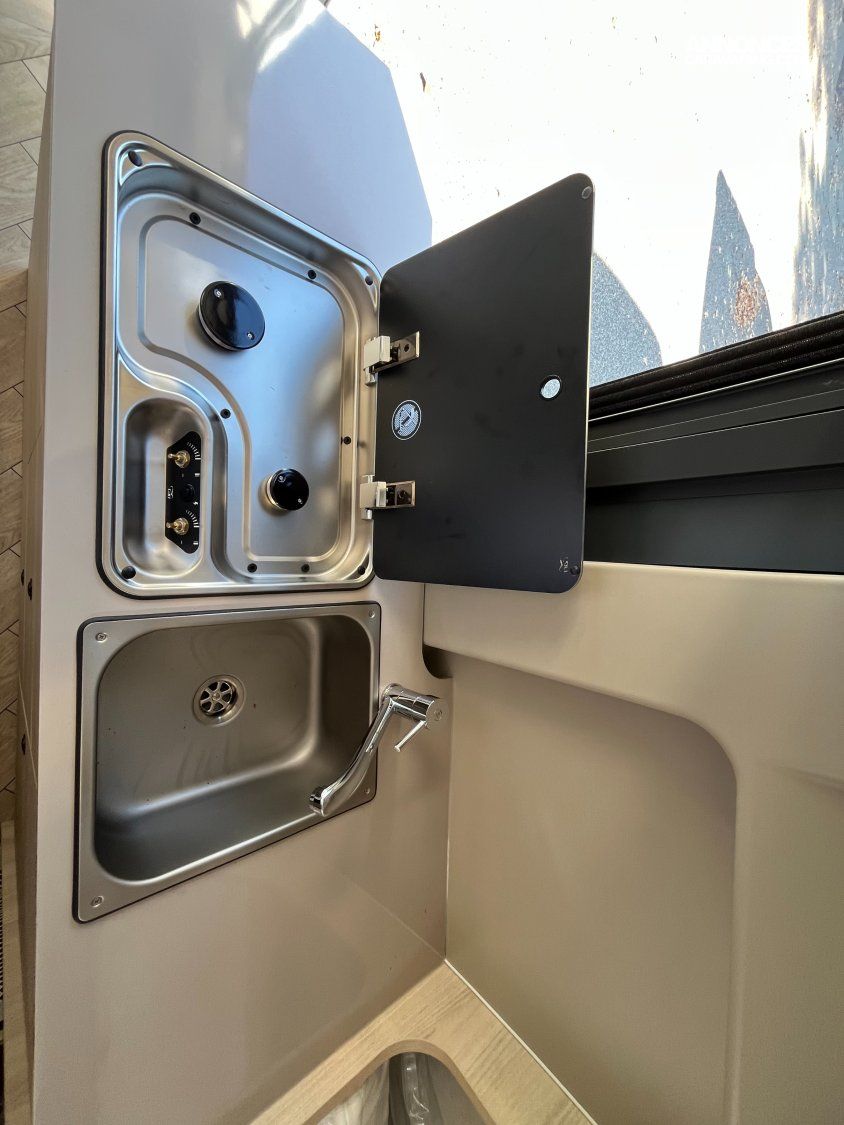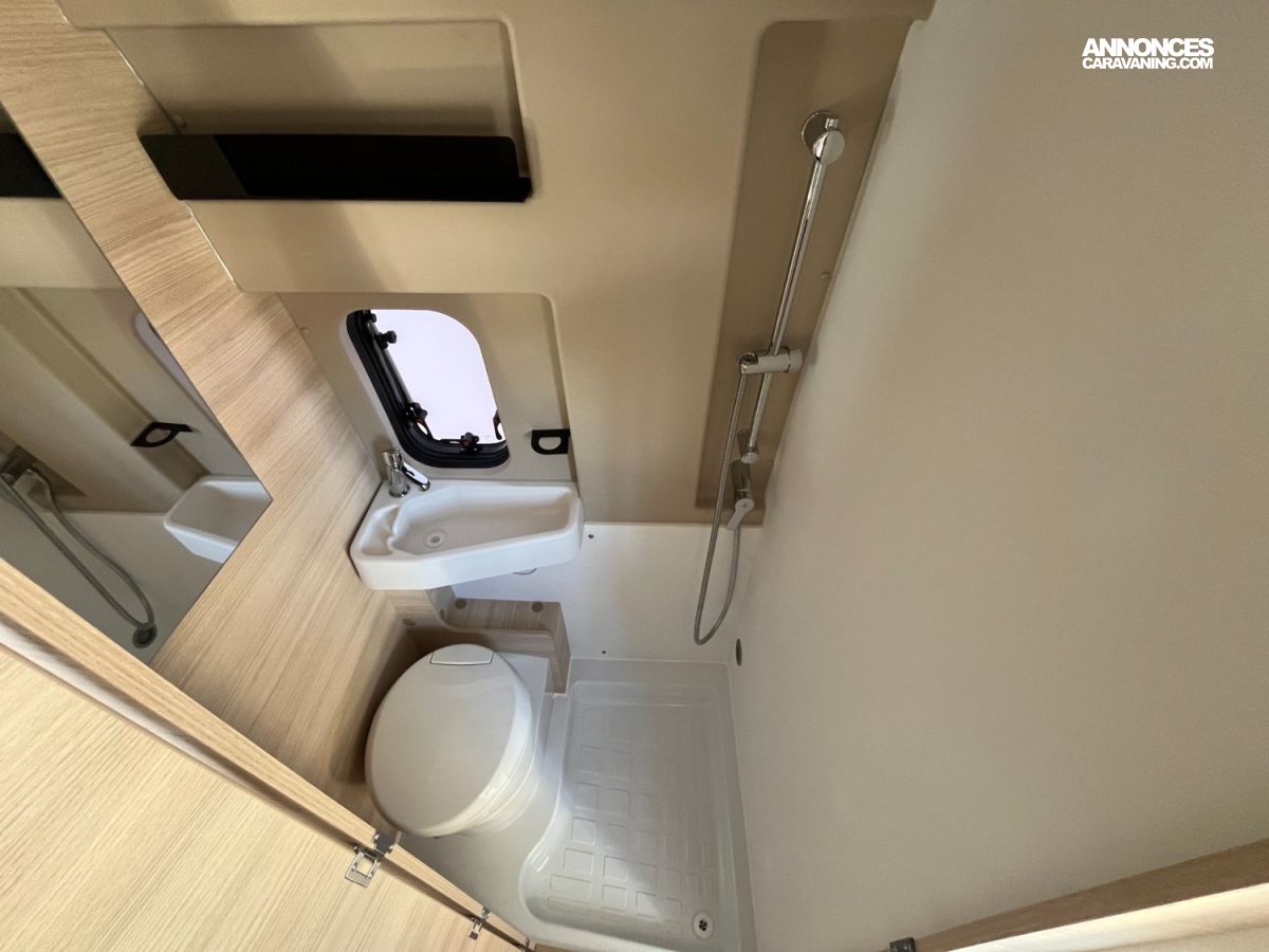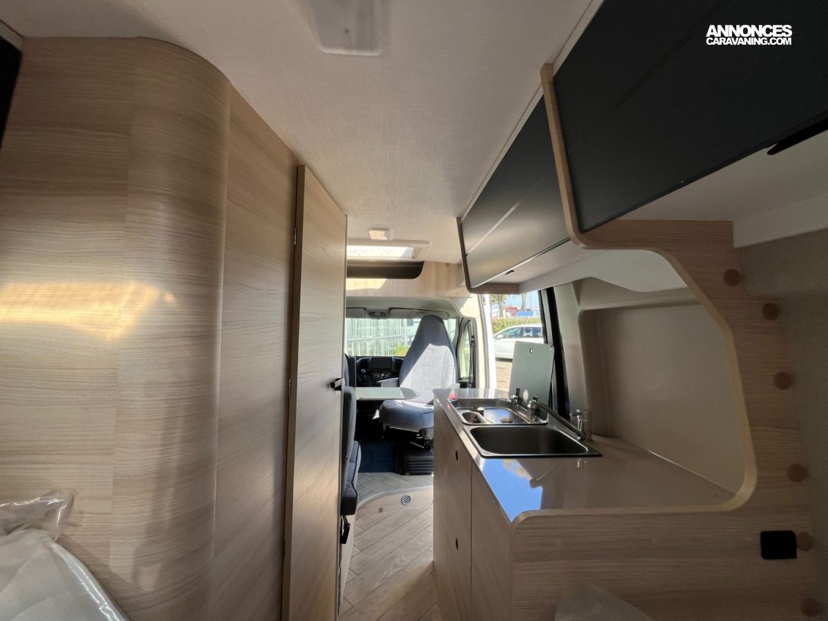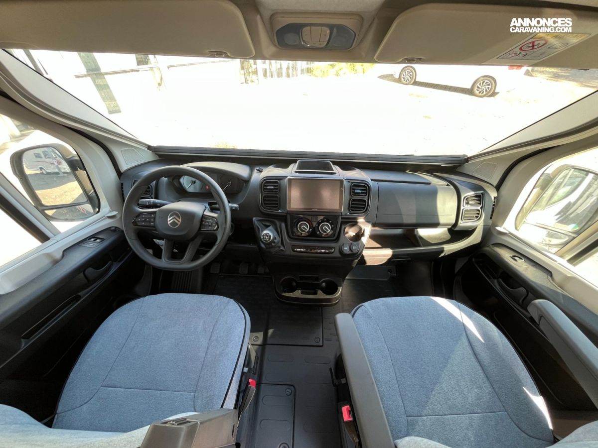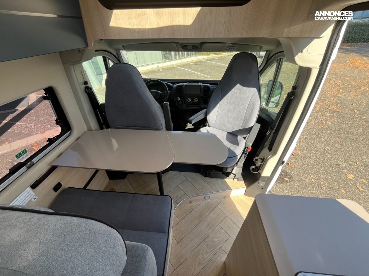 Fourgon aménagé compact et fonctionnel (5.99 m). 4 places carte grise / 3 couchages. Motorisation 2.2 L – 140 ch sur porteur Citroën. Cuisine équipée, salle d’eau complète avec fenêtre, chauffage performant, frigo 84 L et nombreux rangements. Isolation renforcée, design intérieur moderne 2026 et confort optimal pour voyager en toute liberté !